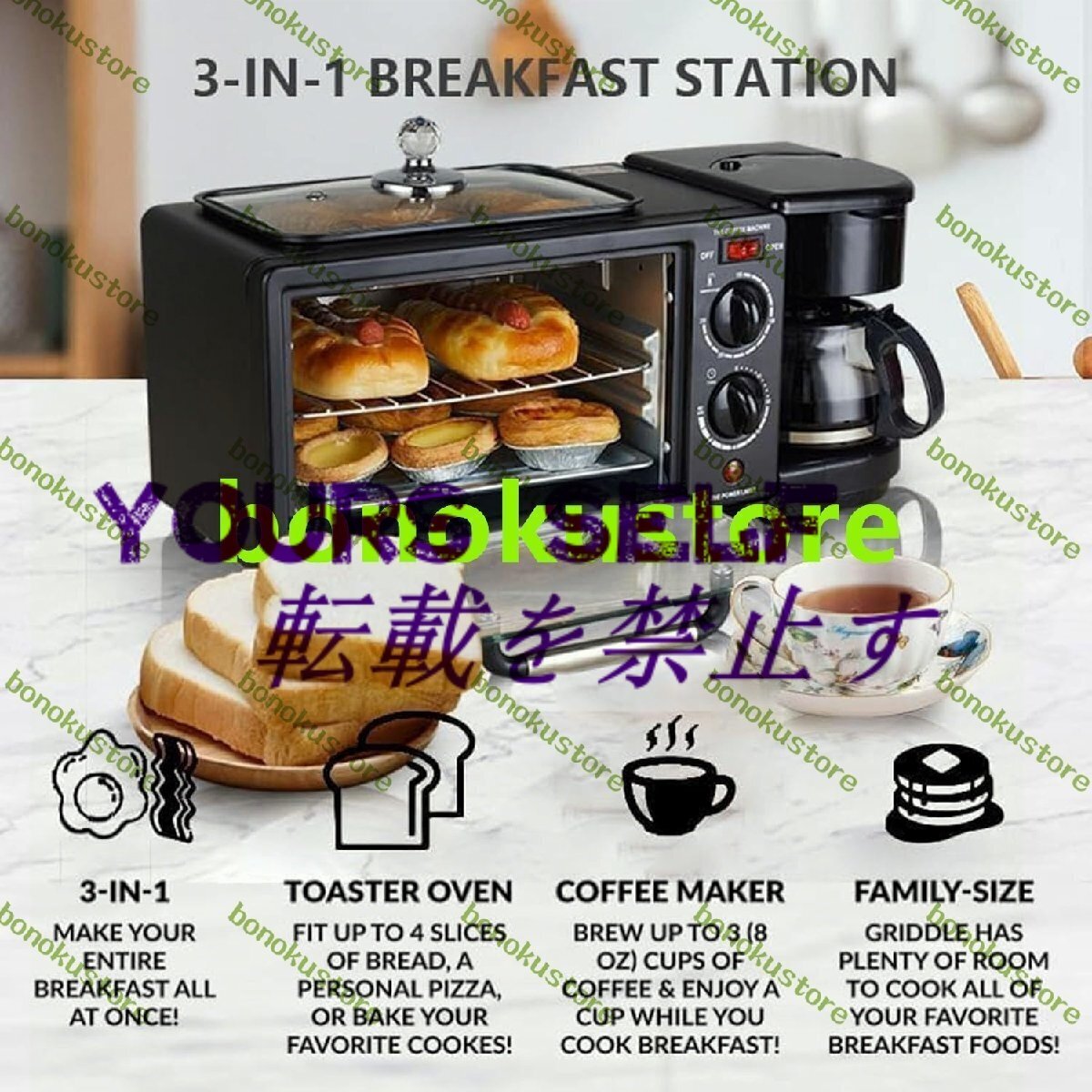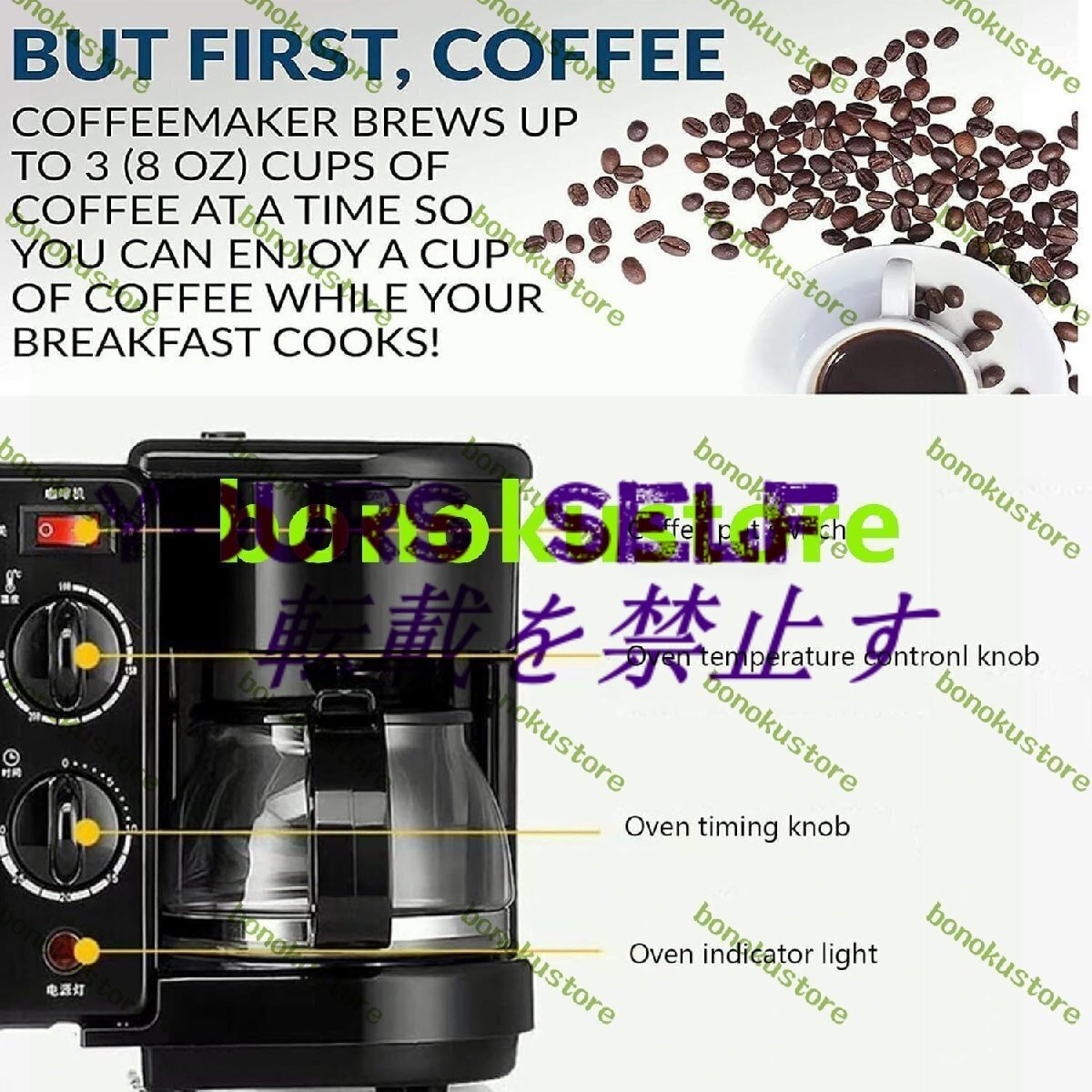 商品説明 商品の説明 製品名: 朝食マシン 製品サイズ:45.5x18x20.5cm コーヒーポット容量: 600ML オーブン容量:9L 定格電圧:110V/220V オーブン+フライパン電力:600W コーヒーポット電力: 450W 定格総電力: 1050W 作業方法: 別々に作業することができます 時間制御: 30分