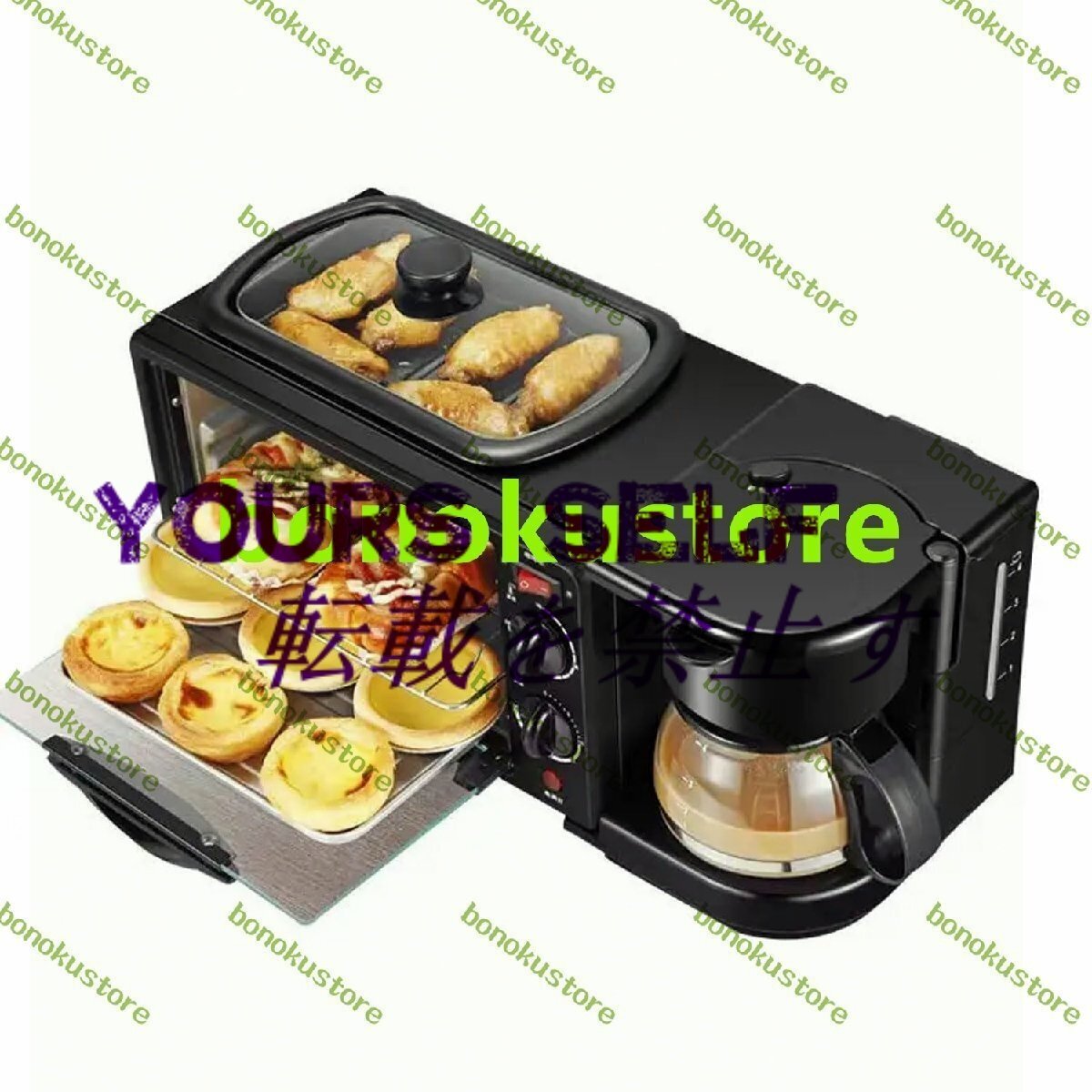家庭用デスクトップ9L朝食メーカー、1050Wノンスティックグリドルステーキマシン、コーヒーマシン&4スライストースターオーブン付き、100-230℃調節可能、レストラン、キッチン、オフィス用