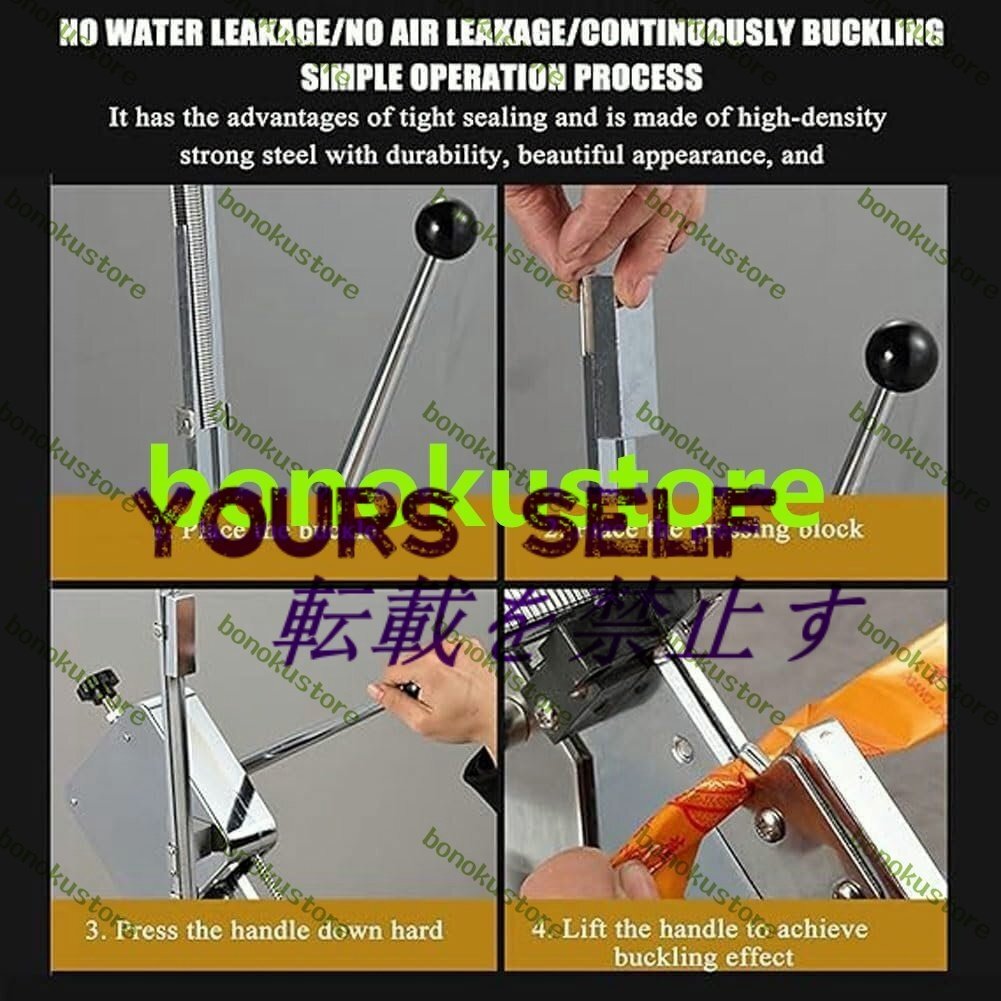 特徴: 上下の金型は安定しており、釘は自動的に供給され、リターンスプリングは摩耗しにくく、ストップネジは釘の締め付けを制御して、さまざまな厚さのシールを実現できます。 仕様: 名前: ソーセージシール機 材質: ステンレス鋼 サイズ: 36x18x56cm 重量: 約。 11kg / 388オンス パッケージリスト: 1x ソーセージシーリングマシン 注: 座屈後のシール性能はフィルムのサイズと厚さに密接に関係します。製品の品質を確保するために、ユーザーは製品要件とプロセス条件に応じて適切な機械モデルとU字型バックルを選択するように求められます。