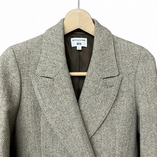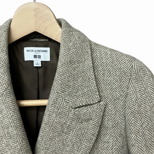 ユニクロ UNIQLO × INES DE LA FRESSANGE イネス ヘリンボーン ウール ダブルブレスト コート ベージュ S レディース