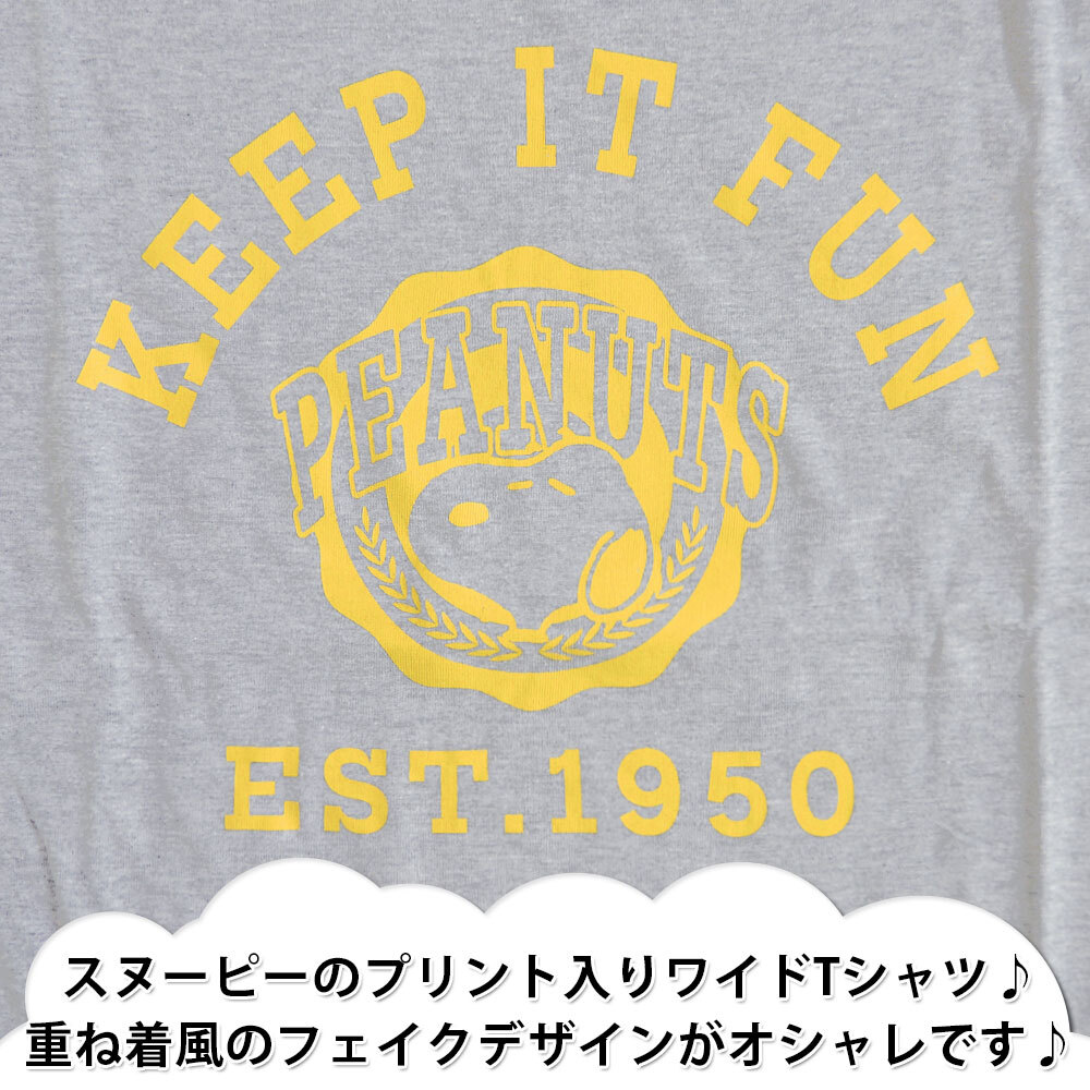 正規店仕入れの新品未使用品です 綿素材で、着心地は抜群です スヌーピーのプリント入りワイドTシャツ 重ね着風のフェイクデザインがオシャレです ※一般的な表記サイズより大きめの商品となり必ず実寸値をご確認ください |