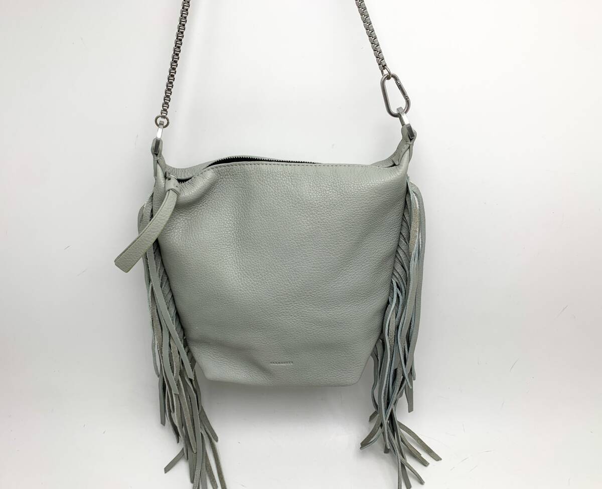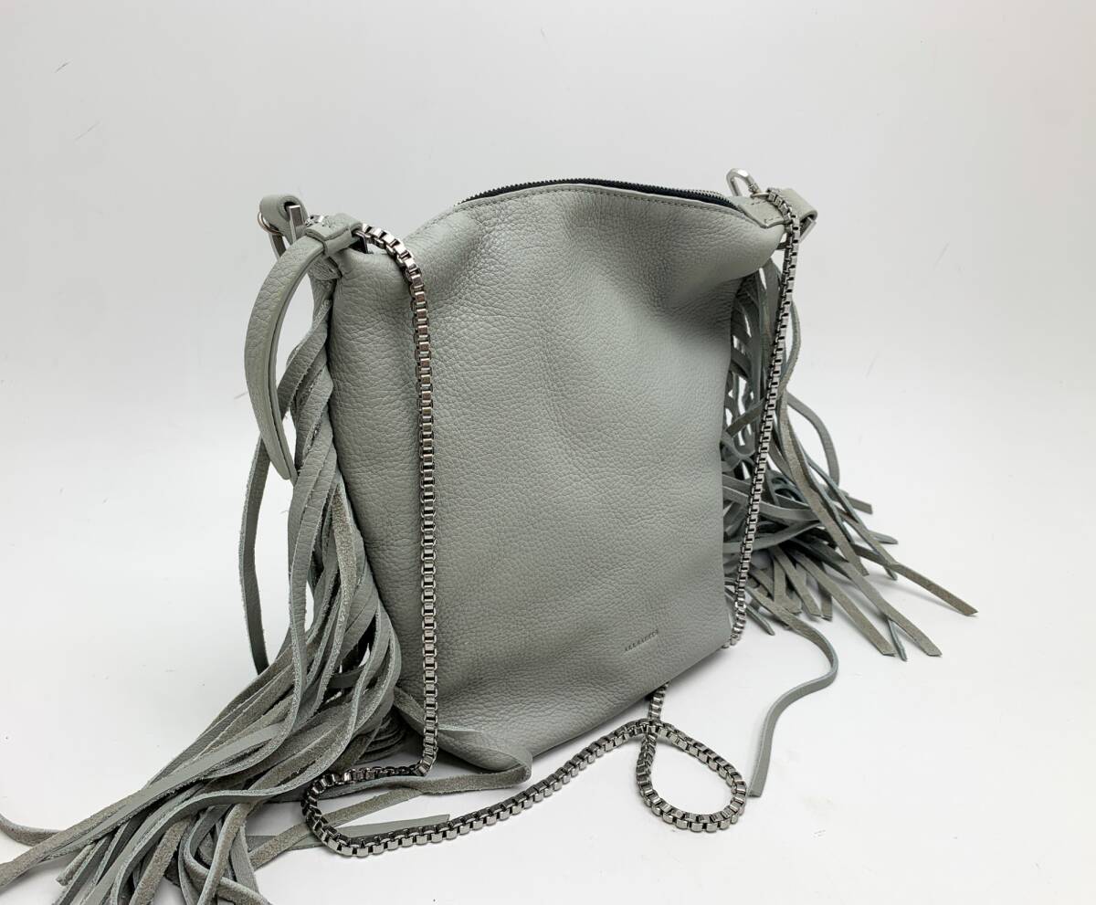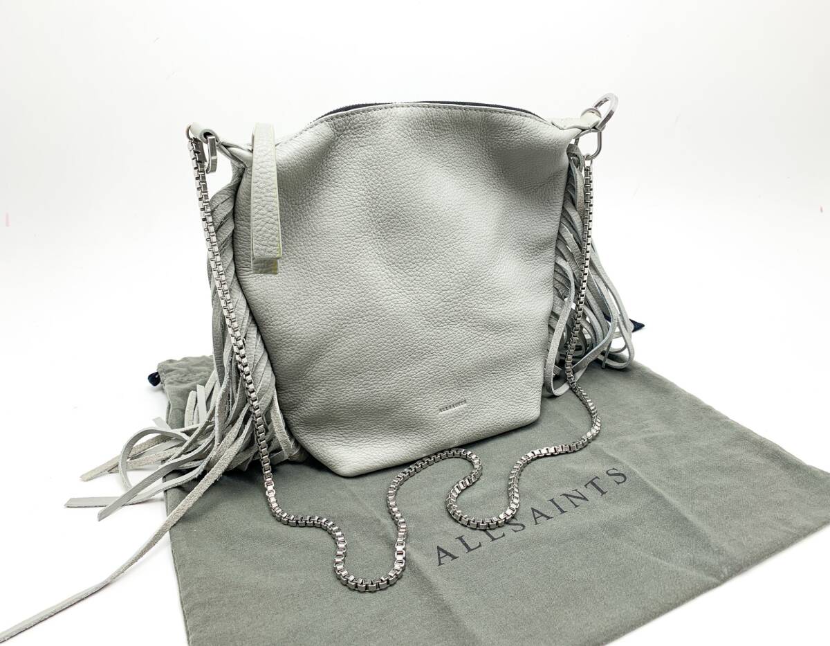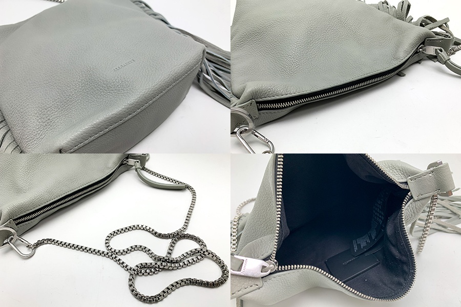 | オールセインツのバッグになります!フリンジとチェーンストラップが魅力のクロスボディバッグ。チェーンストラップは、Dリングを通して短くしてグラブバッグとしても使用可能。Aランク。大きな問題のない、比較的綺麗なお品です。 | |