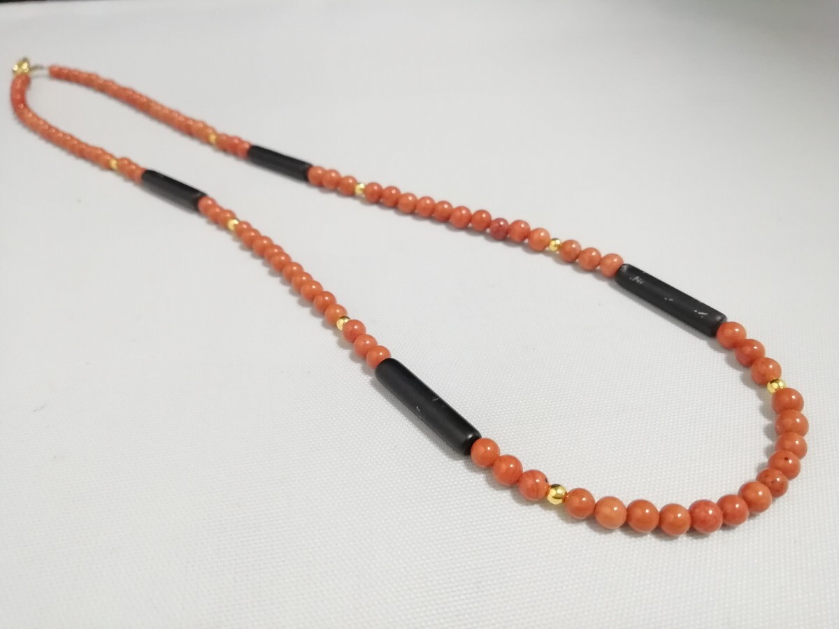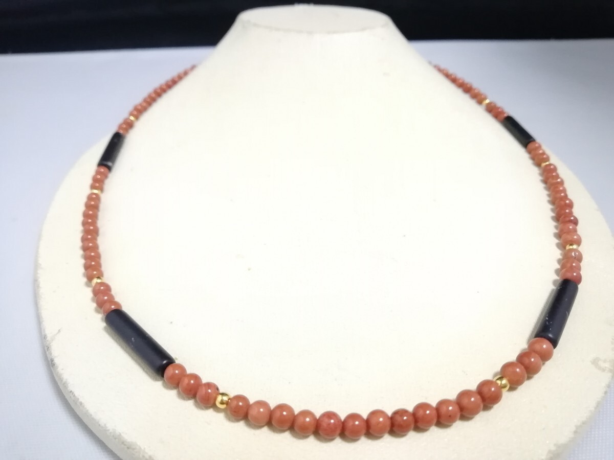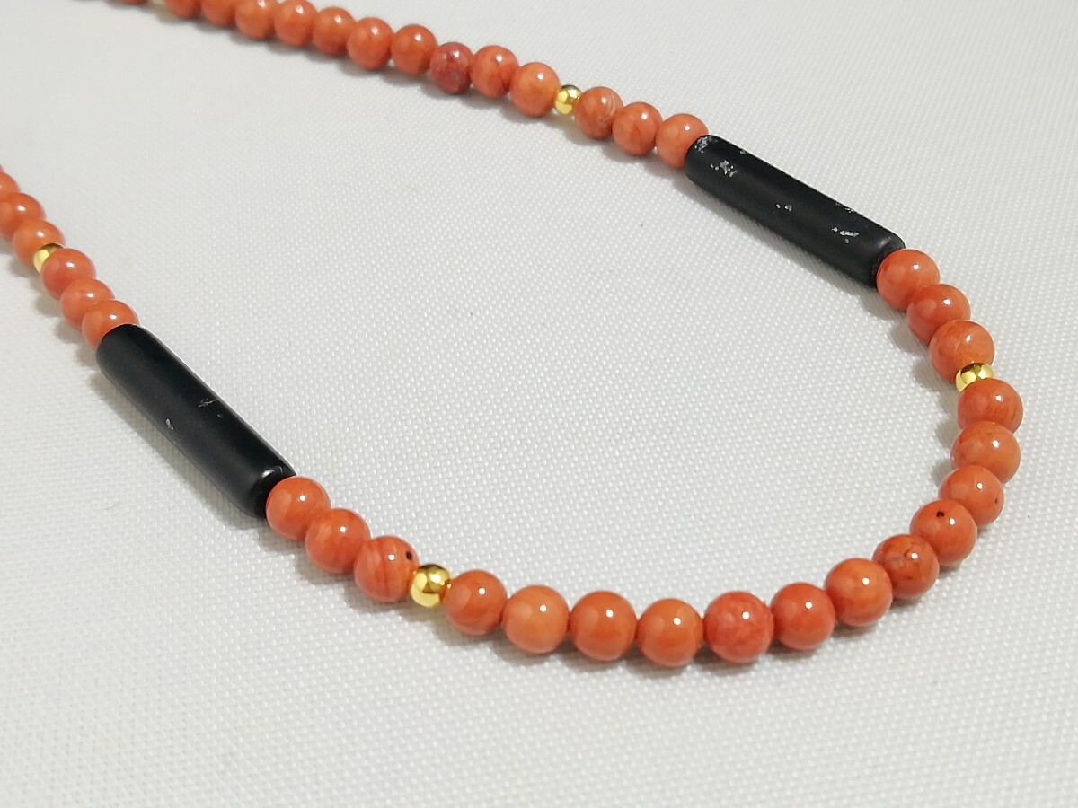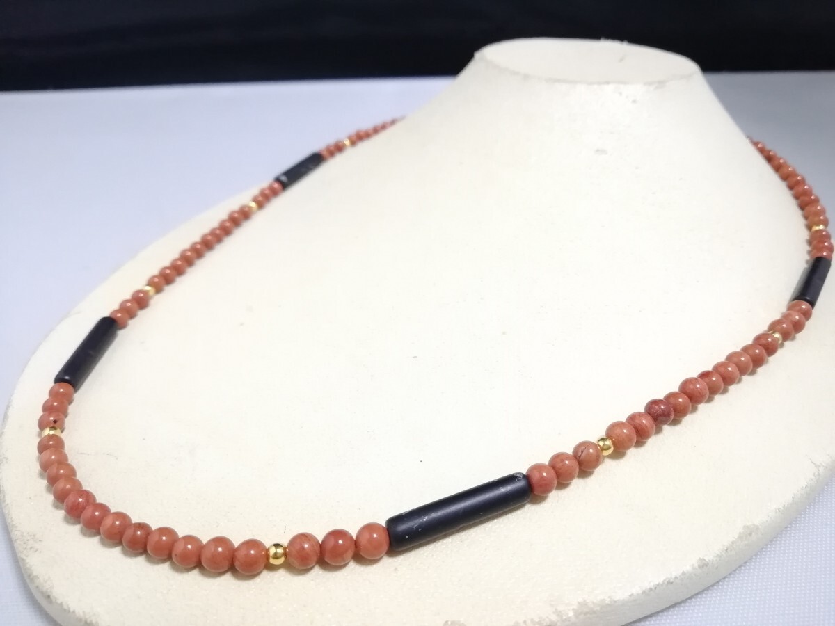天然ファンシージャスパー&オニキスオリジナルディザインロングネックレス