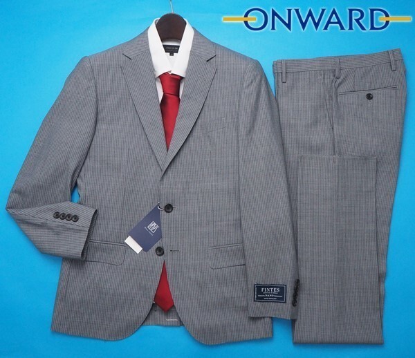 新品 オンワード樫山 バルバス 春夏『FINTES イタリア製生地』撥水 ストライプ スーツ165-M 薄灰(104) HM0765