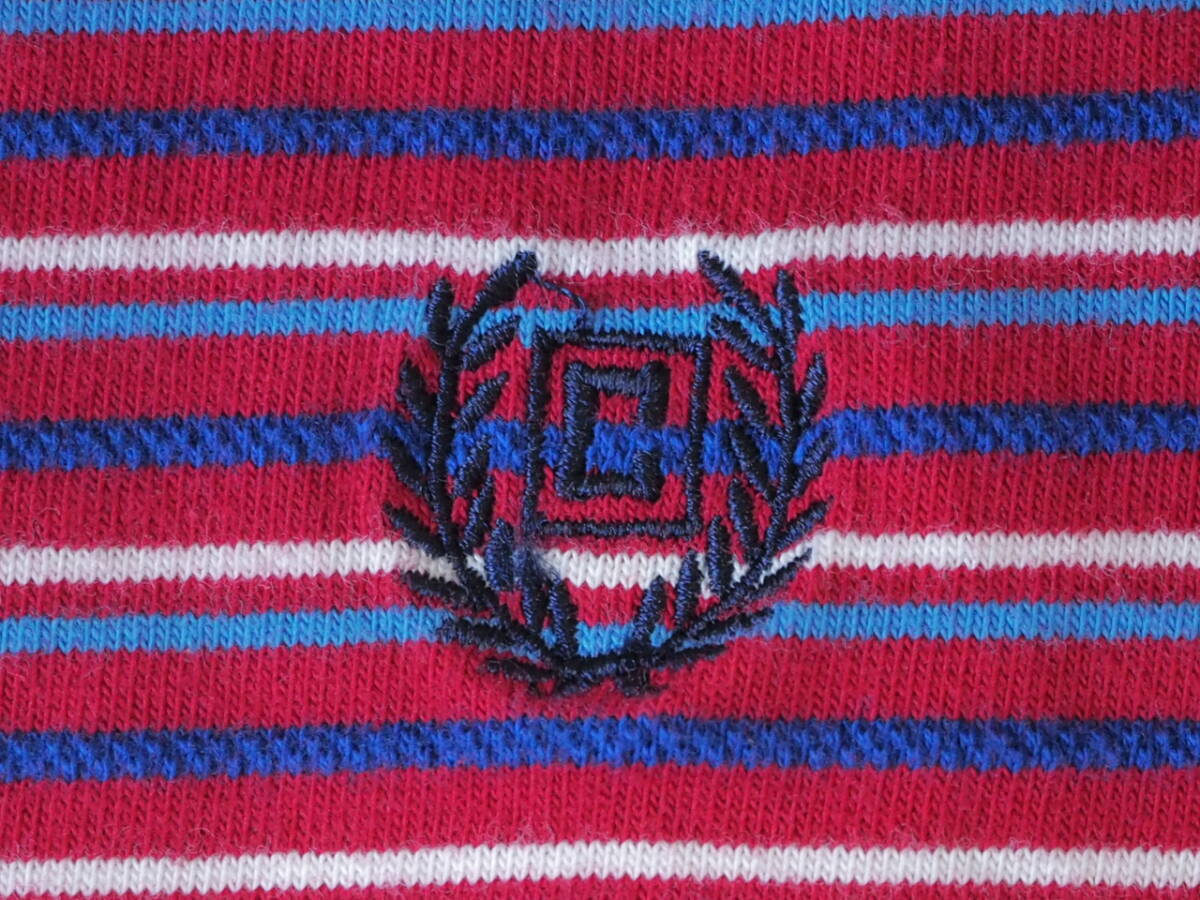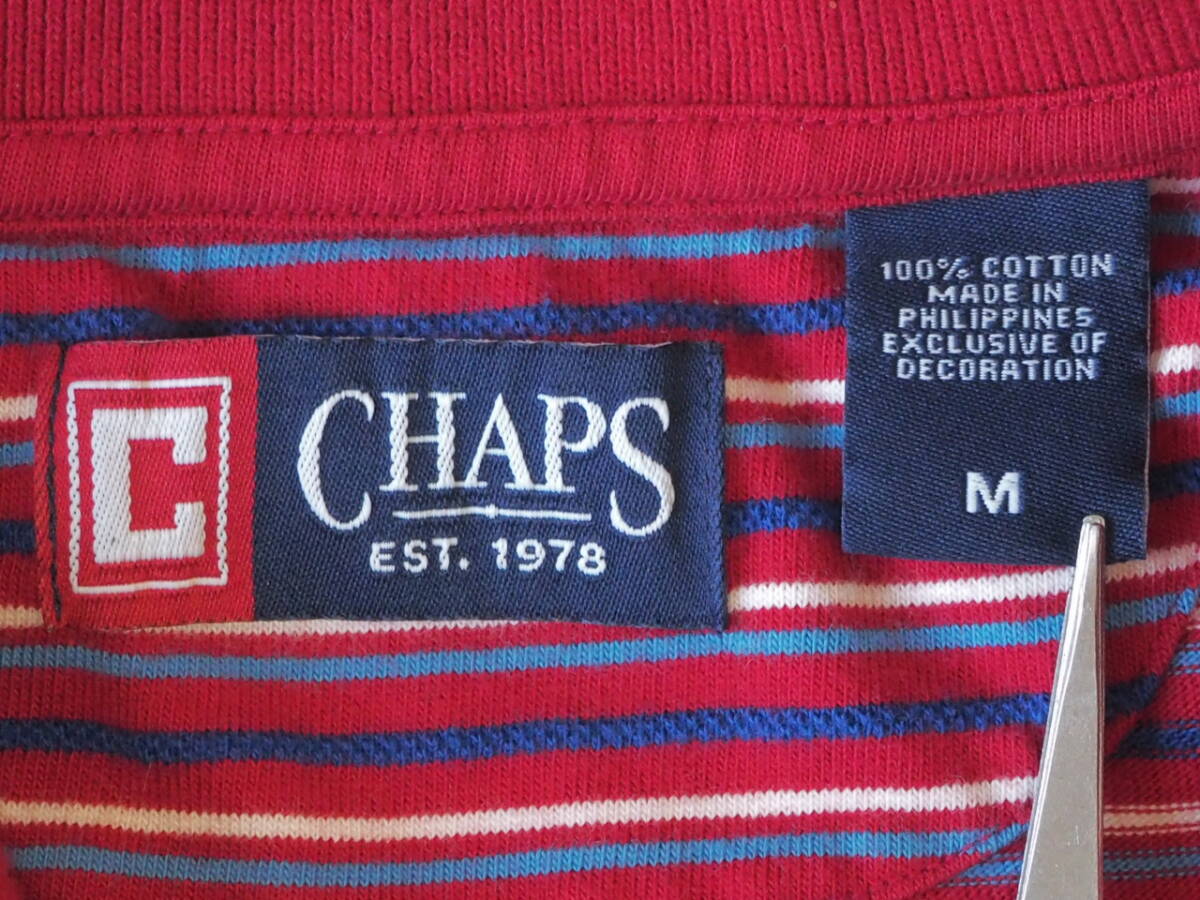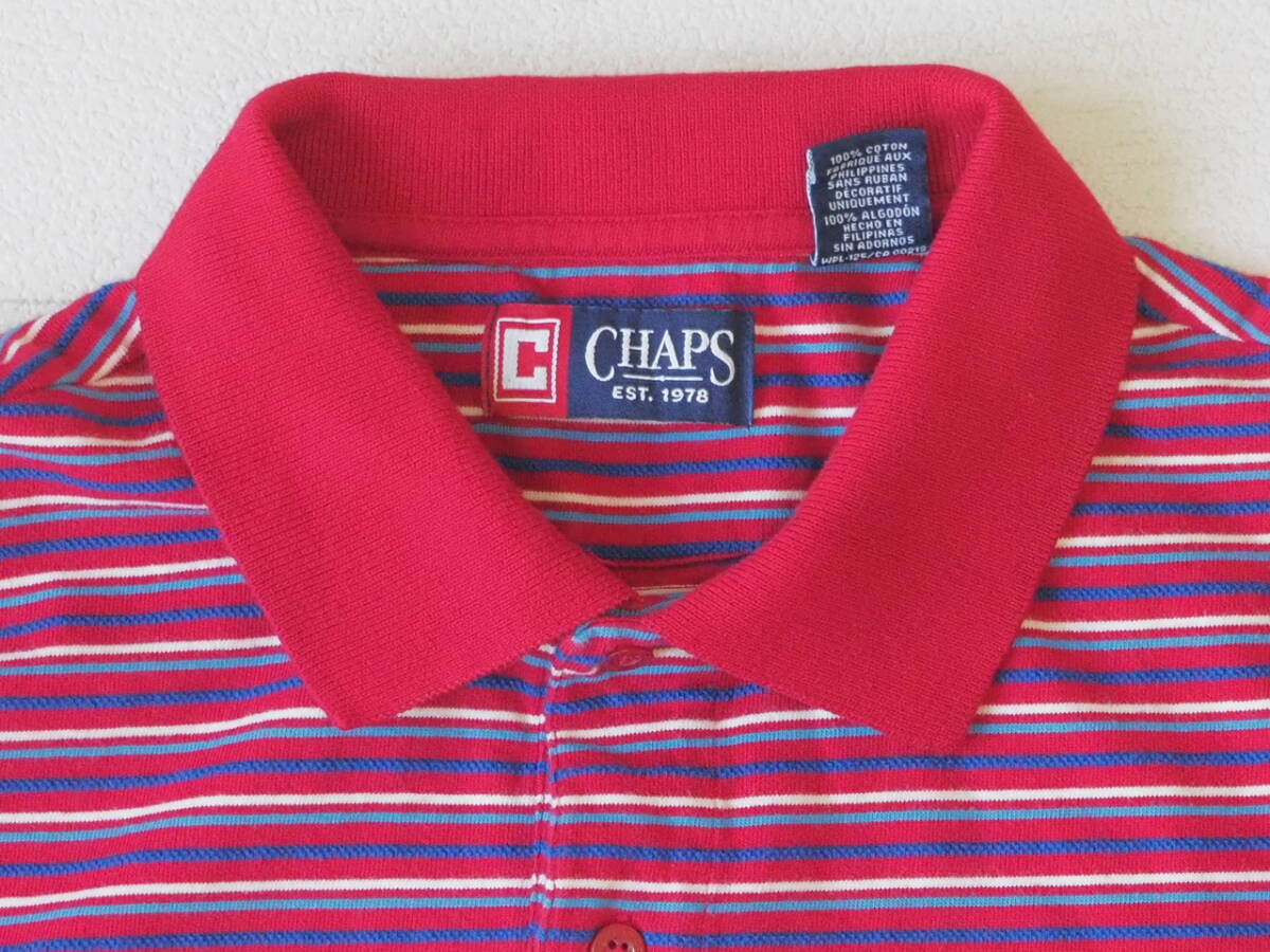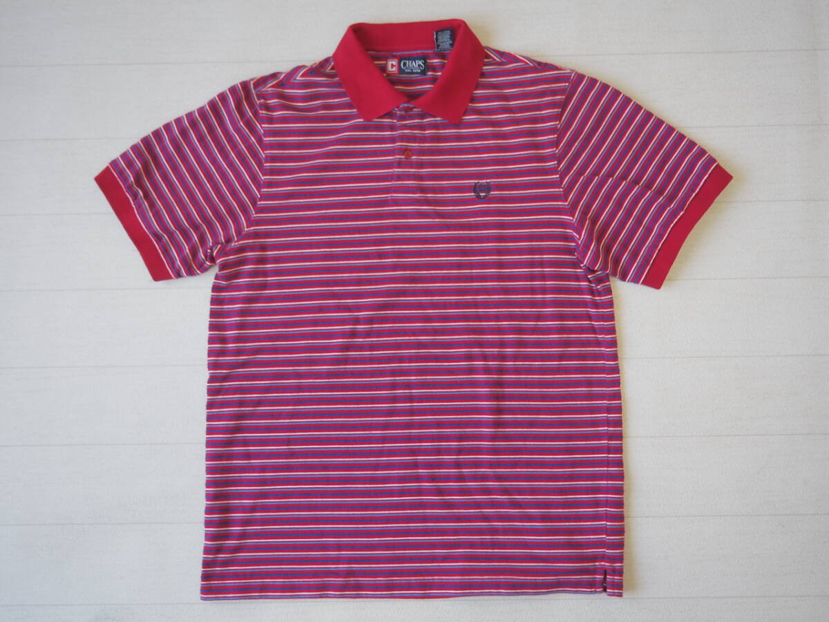CHAPS チャップス USA直輸入 古着 半袖 ボーダー ロゴ ポロシャツ メンズ M レッド トップス 中古