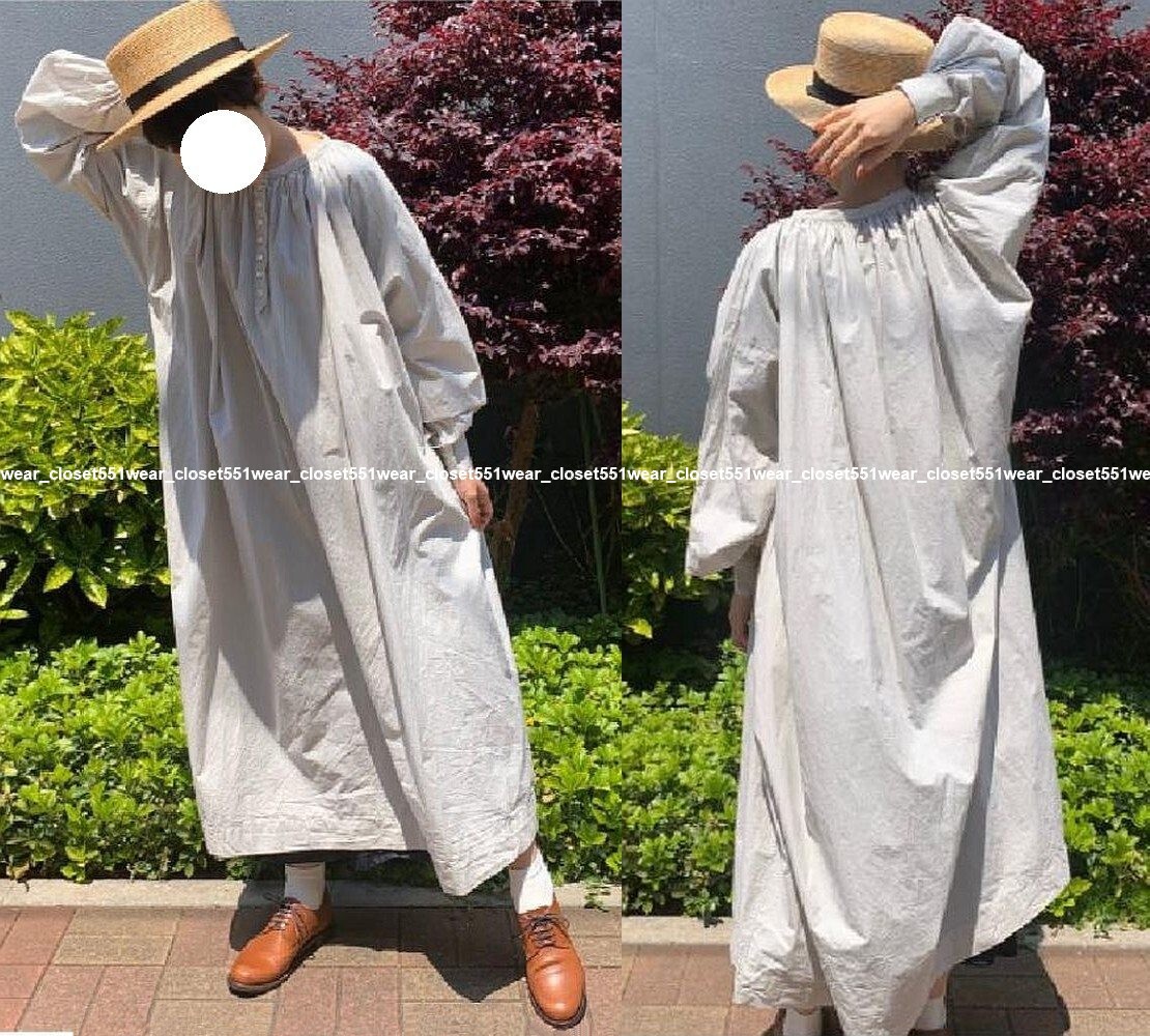 Gauze#のアンティークチャーチスモックワンピース。2020S/Sの定価26180円。タイプライター生地が自然な陰影を落とし込んでくれるワンピース。アンティークのチャーチスモックが原型になった形は、わざと袖丈が長めになっているのでカフスを留めてふんわりさせて。たっぷりのギャザーが収まるカフスは、手首をほっそり見せてくれます。両サイドにはポケット付いて使い勝手良く、とろりとしたマットなコットン素材とやさしいグレーが初夏の着こなしにもぴったりな1枚。
