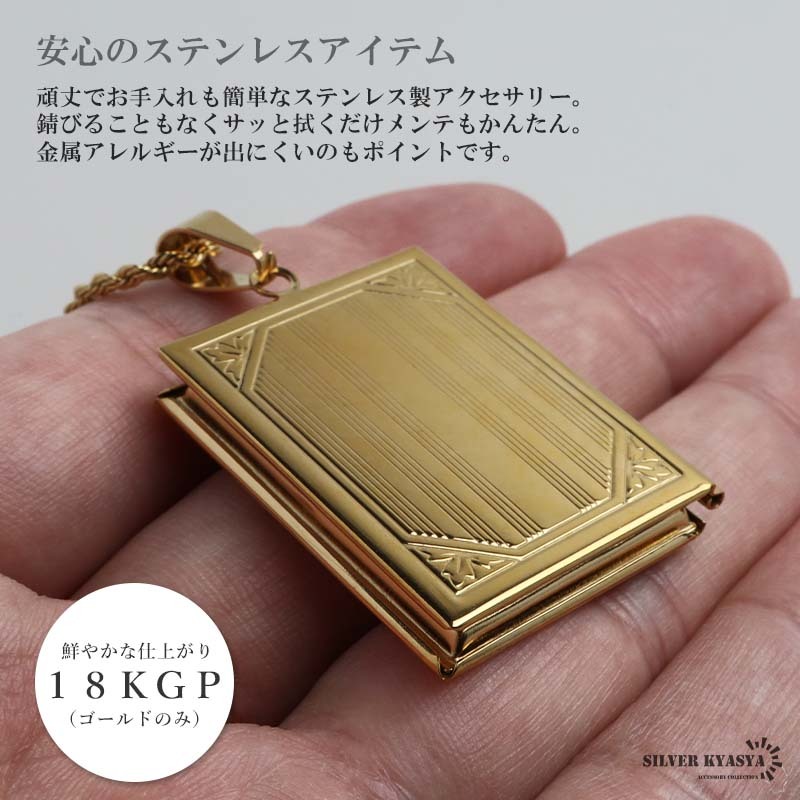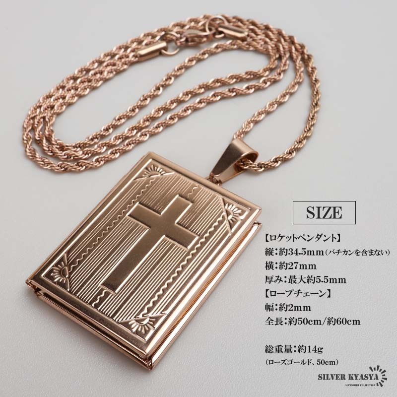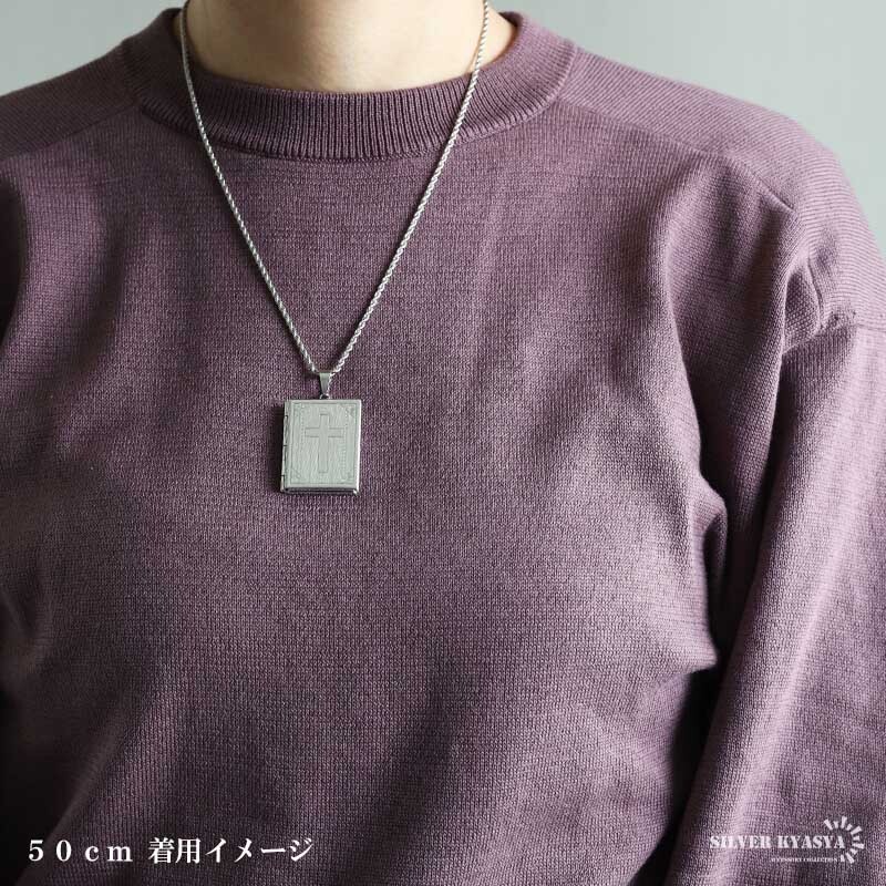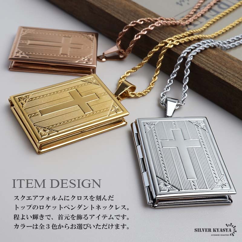 スクエアフォルムにクロスを刻んだトップのロケットペンダントネックレス。程よい輝きで、首元を飾るアイテムです。カラーは全3色からお選びいただけます。