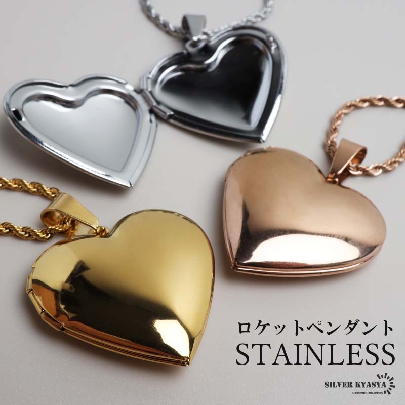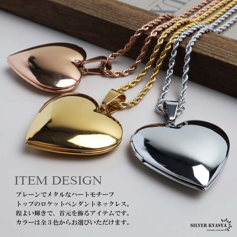 プレーンでメタルなハートモチーフトップのロケットペンダントネックレス。程よい輝きで、首元を飾るアイテムです。カラーは全3色からお選びいただけます。
