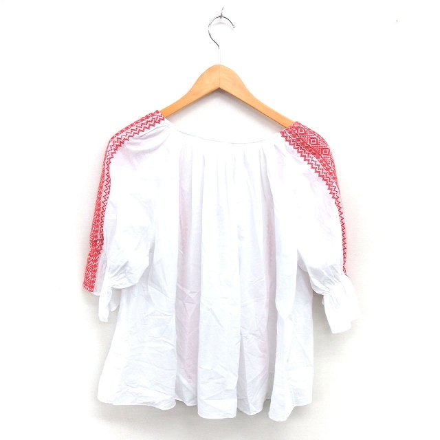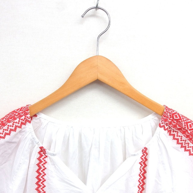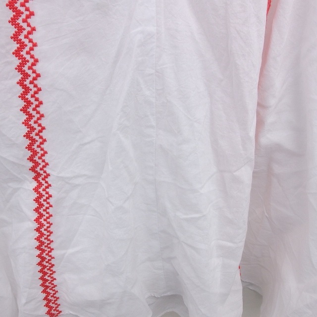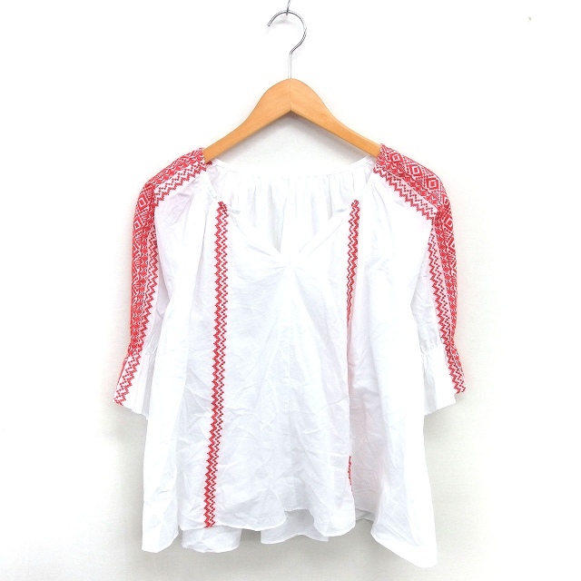 レイビームス Ray Beams カットソー ブラウス キーネック 刺繍 ラグランスリーブ 七分袖 ホワイト オレンジ 白 /TT レディース