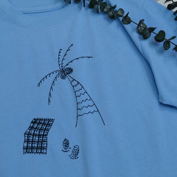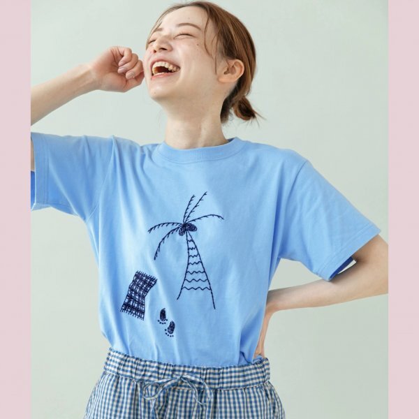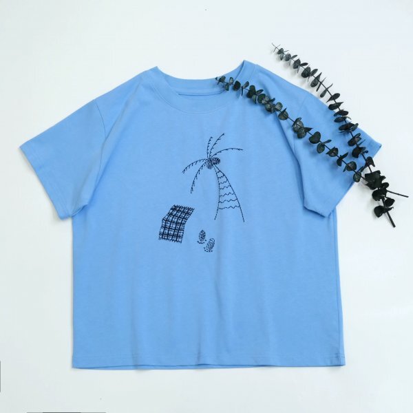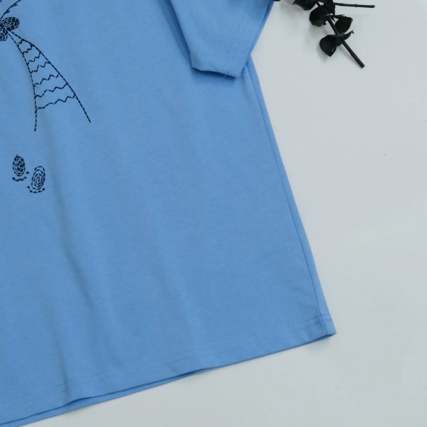 sg 0704 刺 Tシャツ 半袖 トップス チュニック 大人可愛 フリーサイズ ナチュラル 綿100% コットン ブルー系