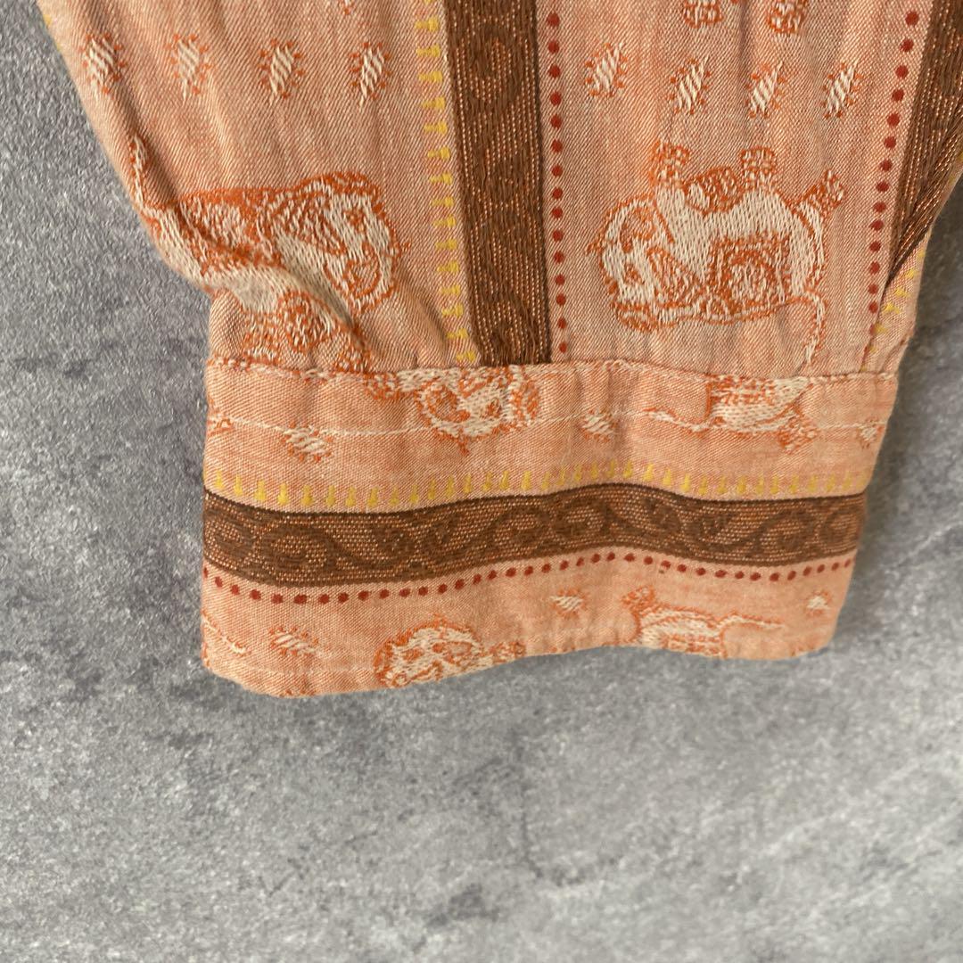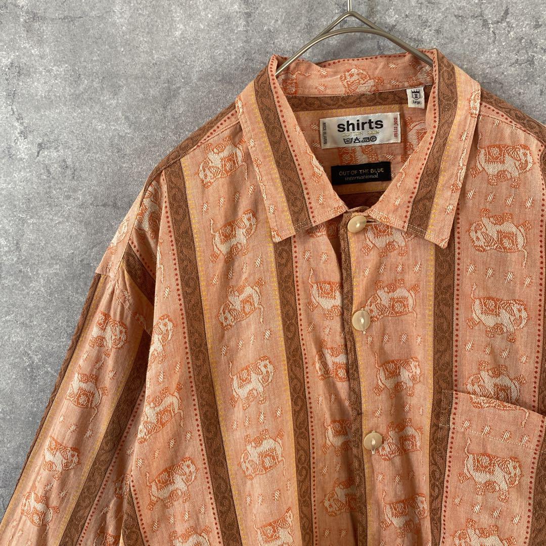 インド象柄シャツ 長袖 コットン ストライプ ゆったりLメンズ i