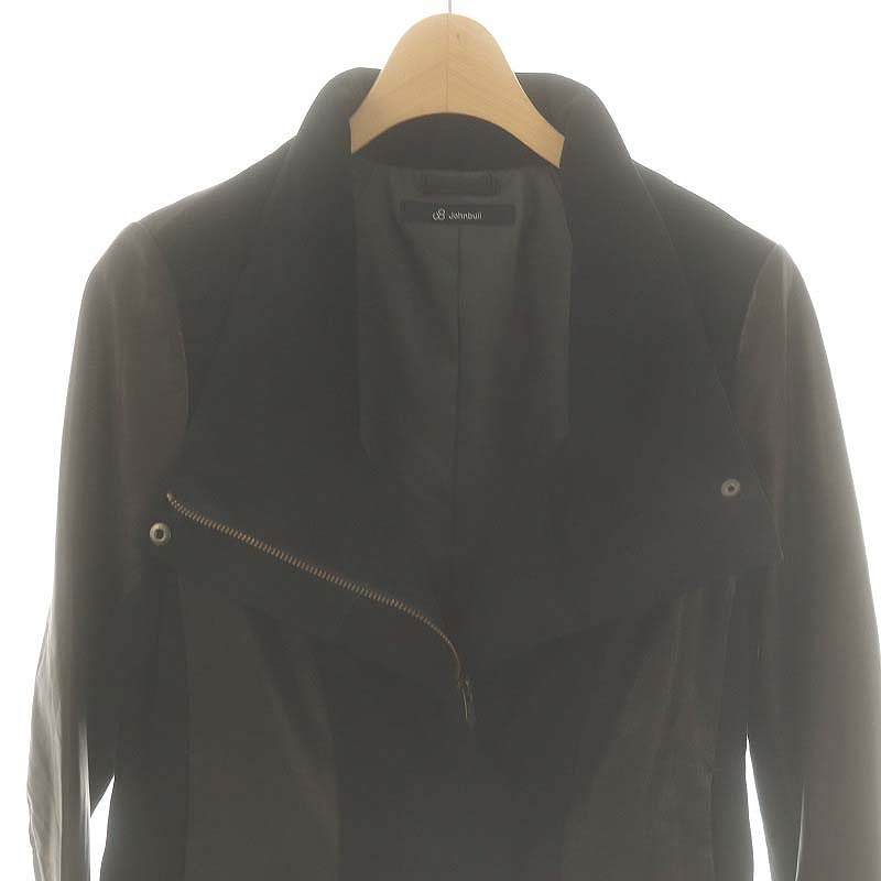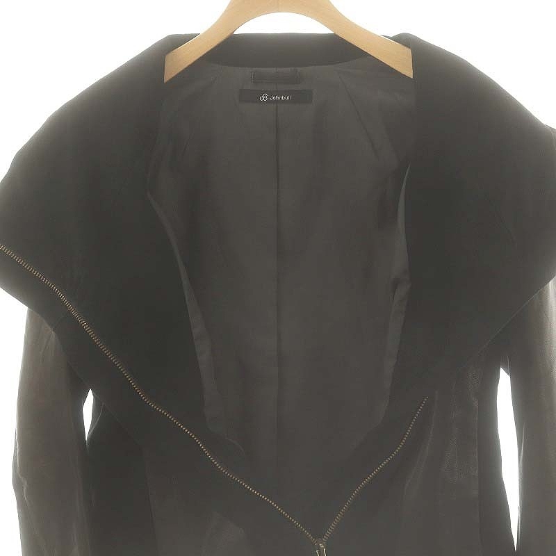 ジョンブル JOHNBULL レザー切替ジャケット ジップアップ 総裏地 M ブラック ダークブラウン /DO ■OS レディース
