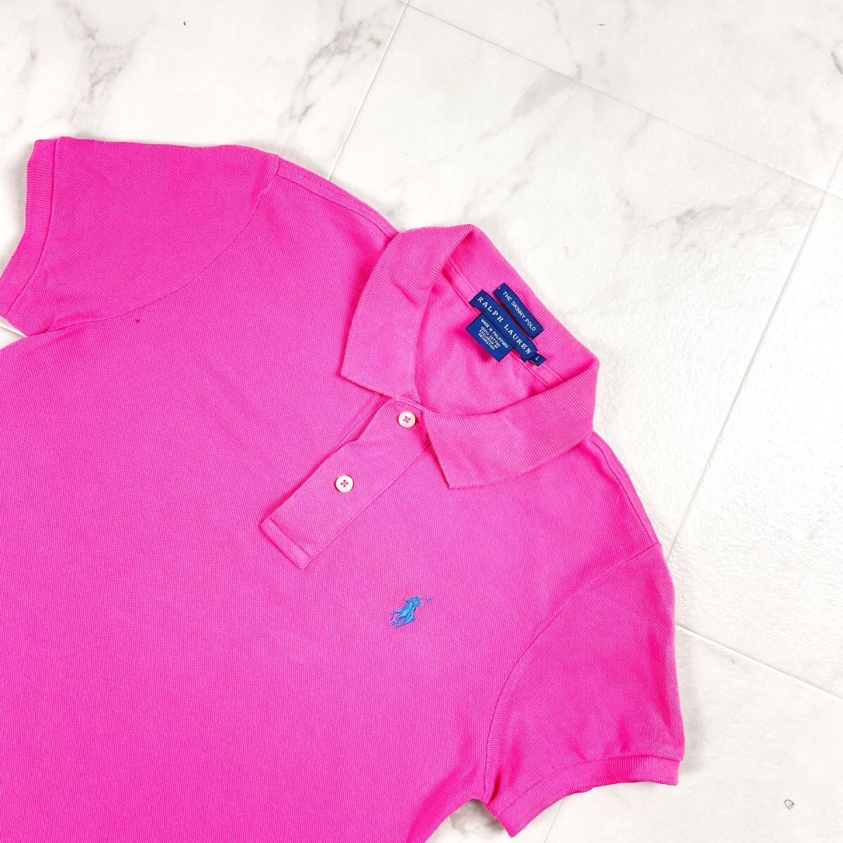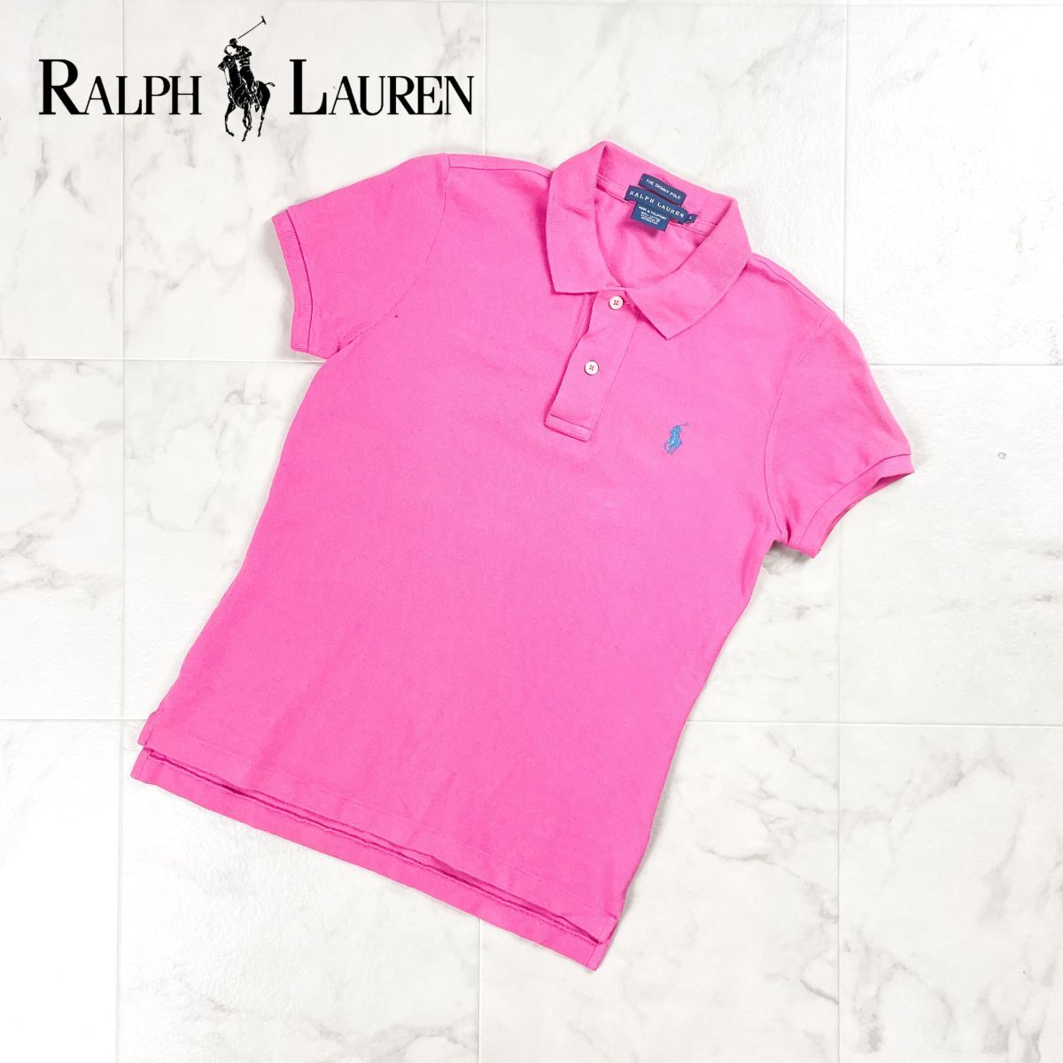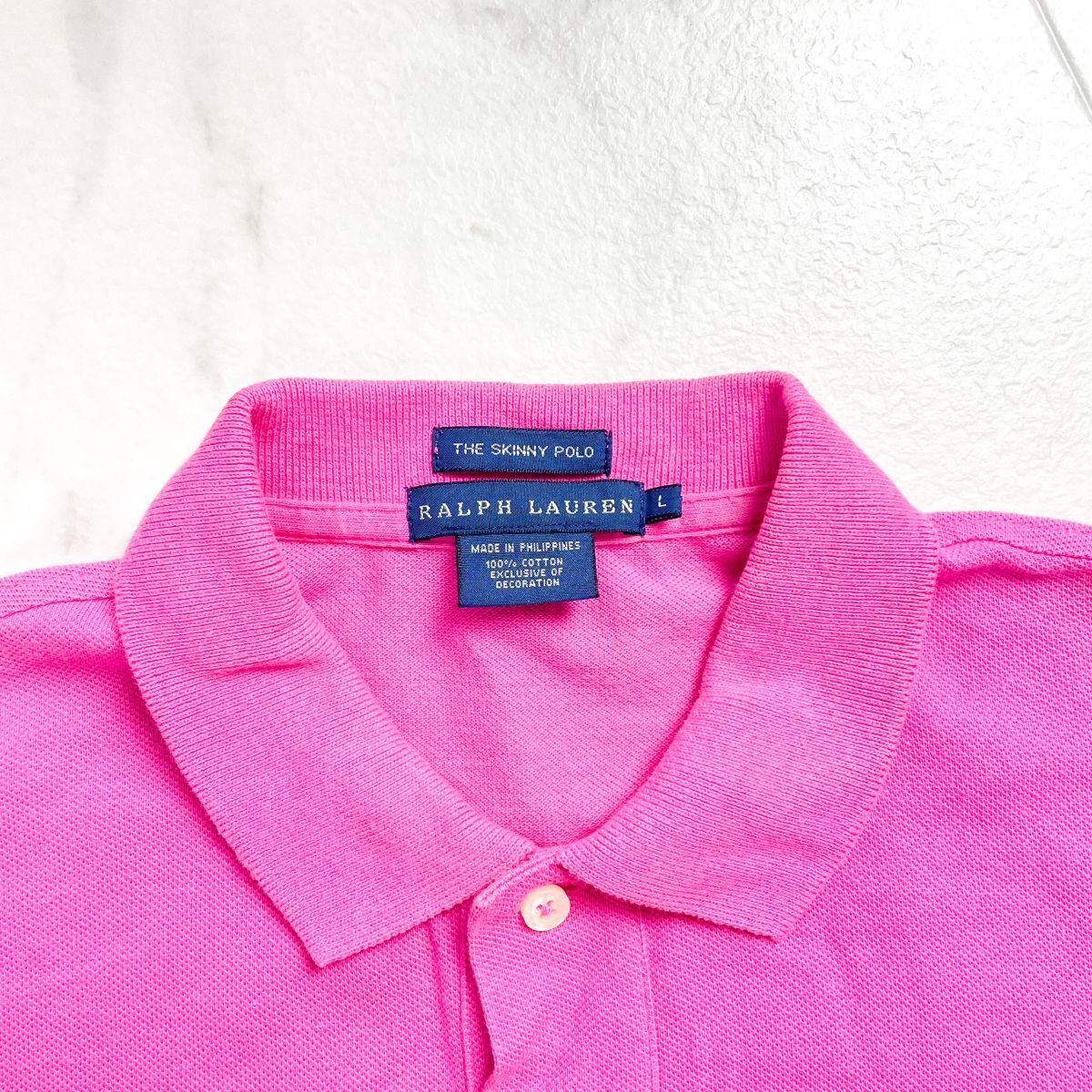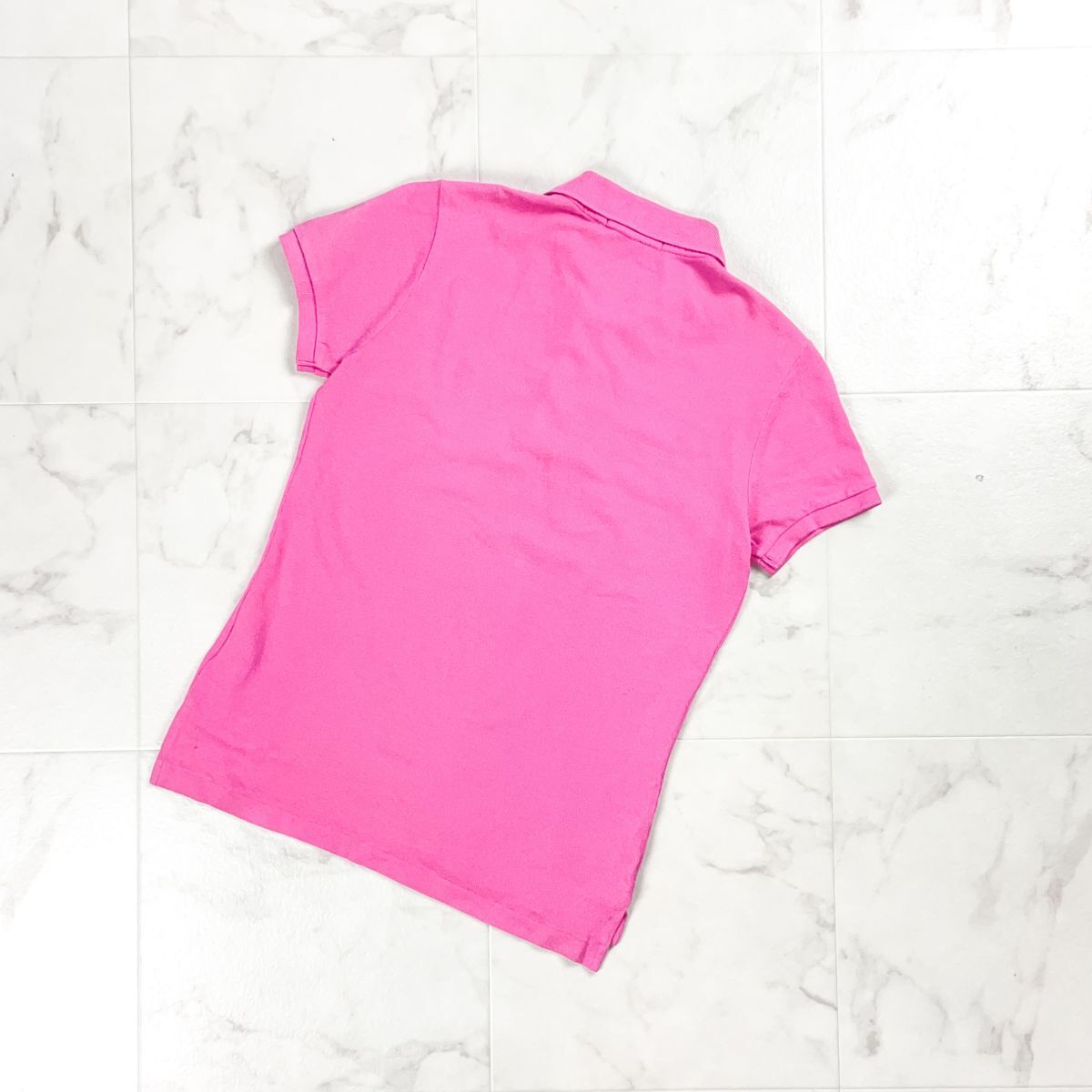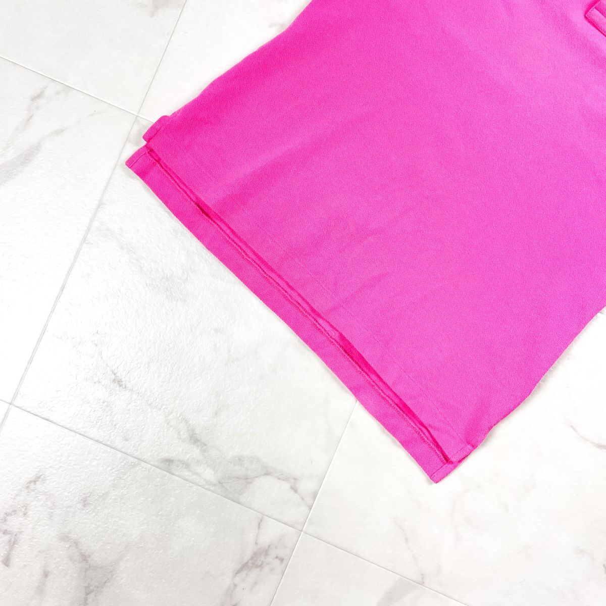 美品 RALPH LAUREN ラルフローレン 半袖ポロシャツ 鹿の子生地 コットン 水色刺繍 レディース ピンク サイズL*BD427