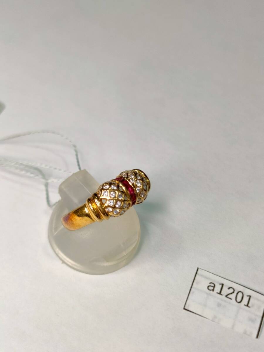 a1201 K18yg ダイヤモンド ルビー リング サイズ8.5号 重さ3.2g