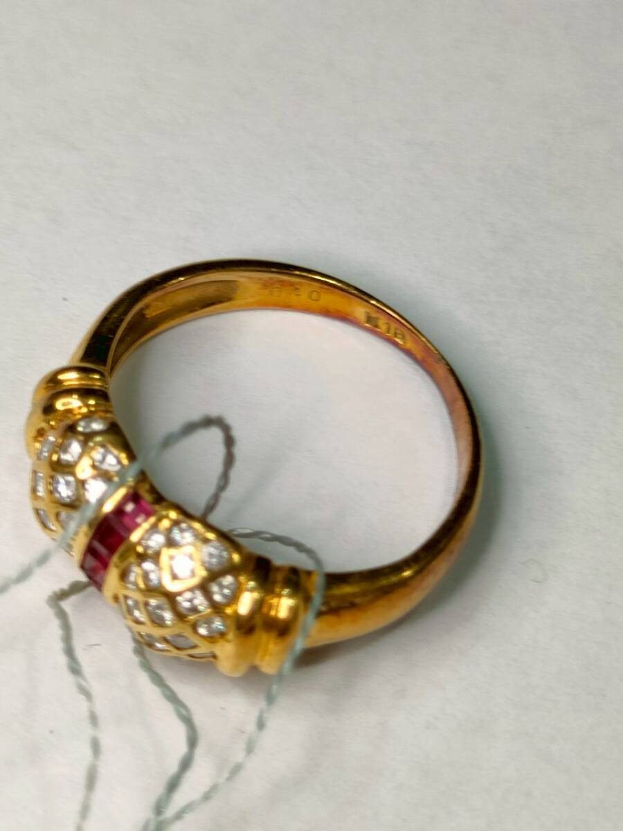 a1201 K18yg ダイヤモンド ルビー リング サイズ8.5号 重さ3.2g