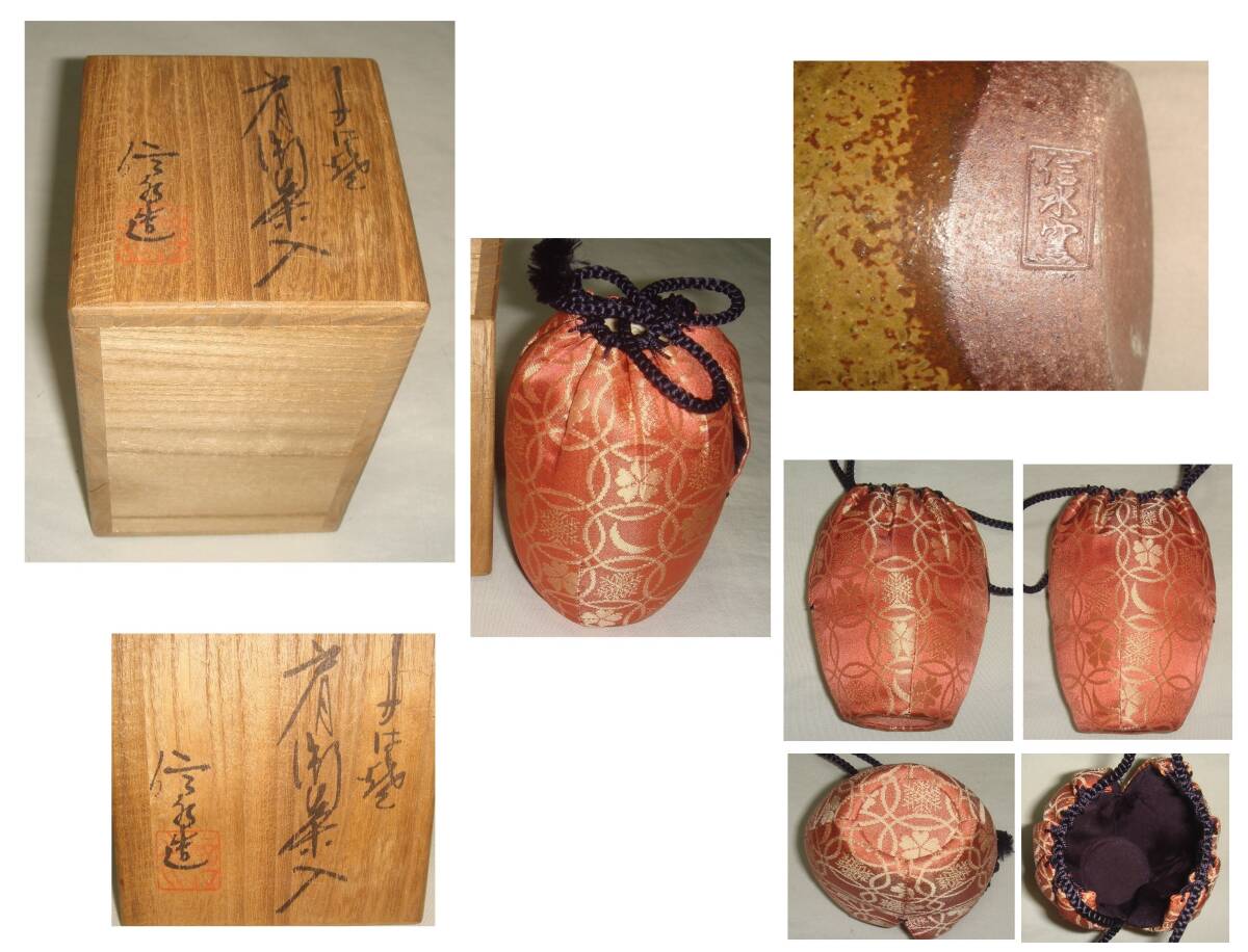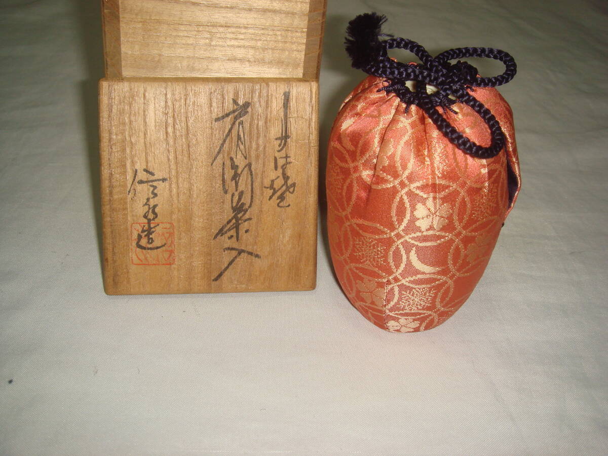 茶道具 丹波焼信水窯 市野信水作 丹波肩衝茶入 雪月花仕覆付 美品!!!