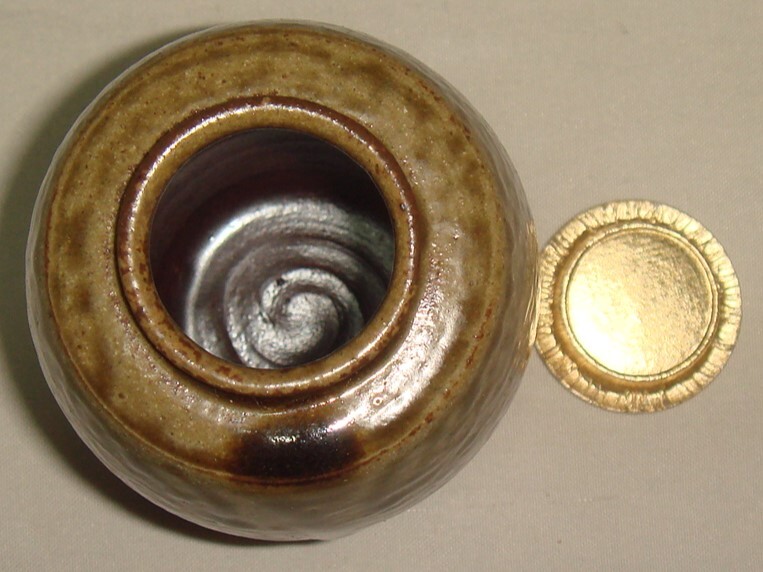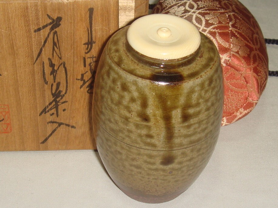 市野信水作 丹波肩衝茶入 の出品です。永年大切に所蔵愛用されてました逸品、極微細な擦れ等の他特に目立つダメージ無く写真の通り良い状態です。仕覆の七宝雪月花緞子も特に擦れホツレ汚れ等ない様です。
