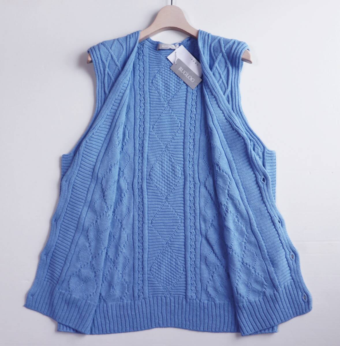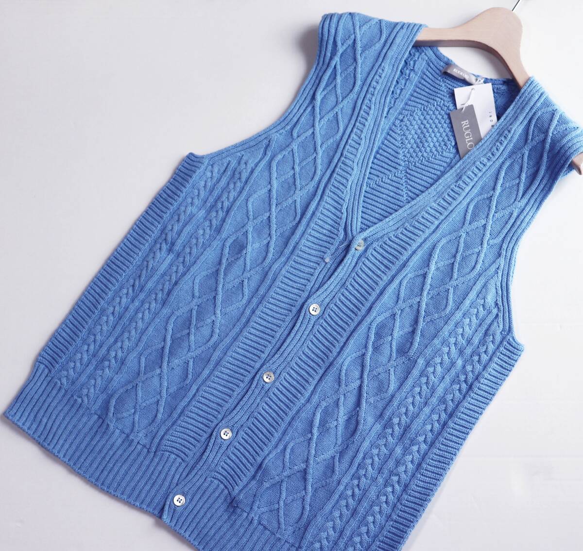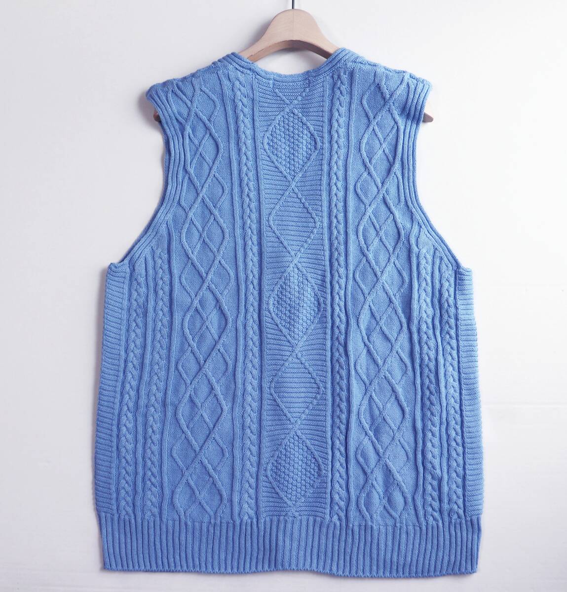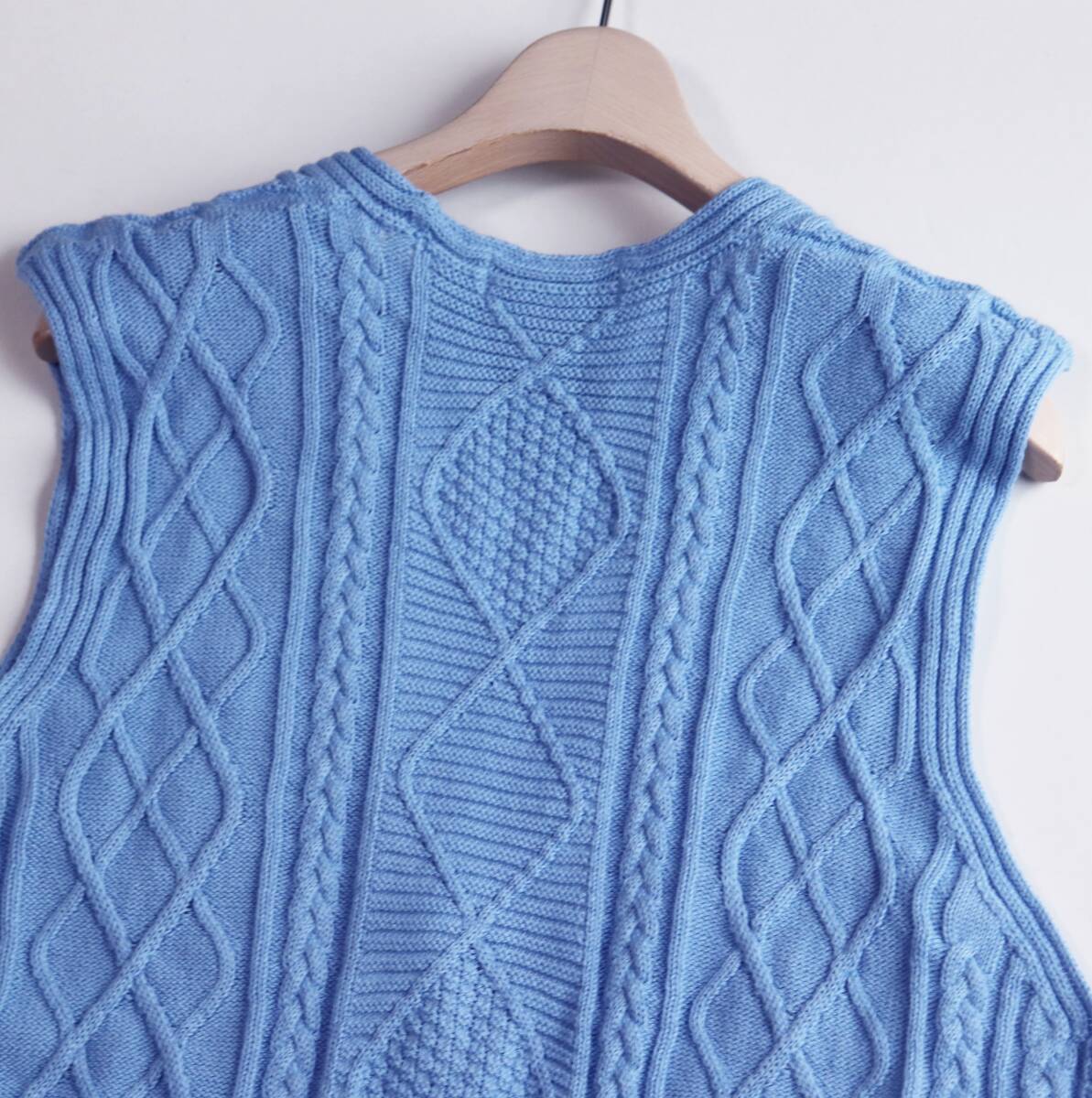 | 《RUGLOG ラグログ》新品 定価17,600円 伸縮性あり Yamagata knit コットンリネン ケーブル編みニットベスト スカイブルー M S1709 |