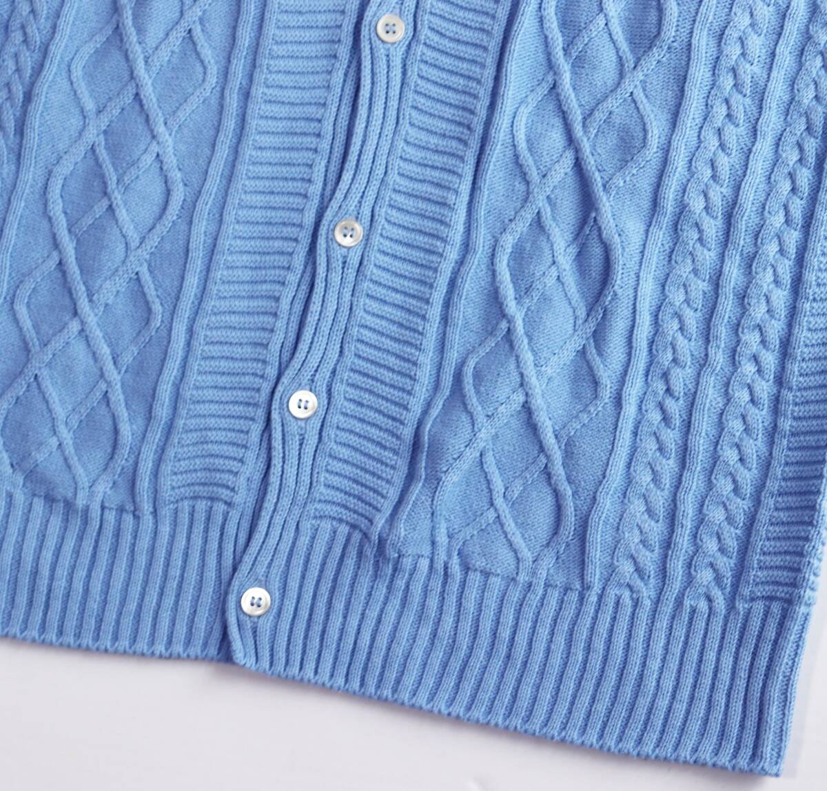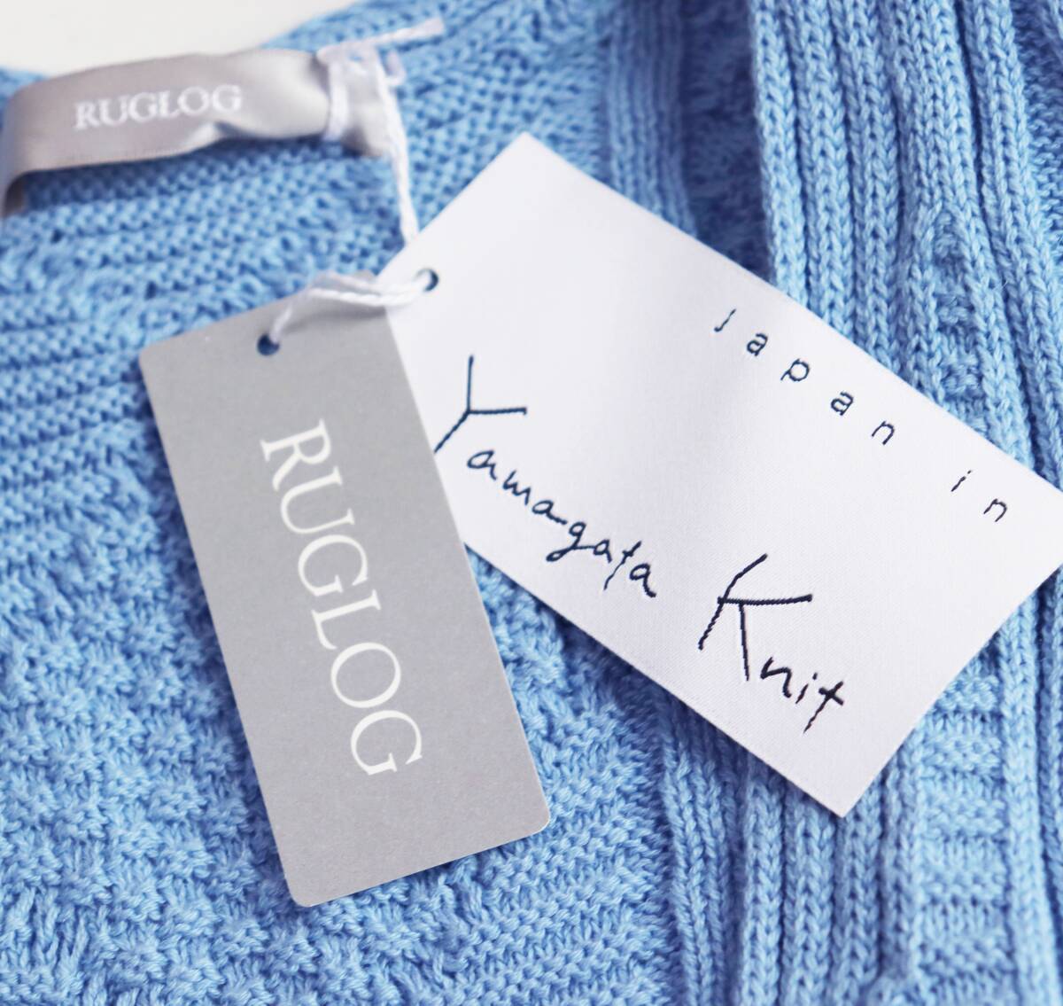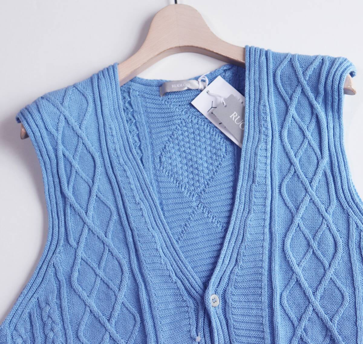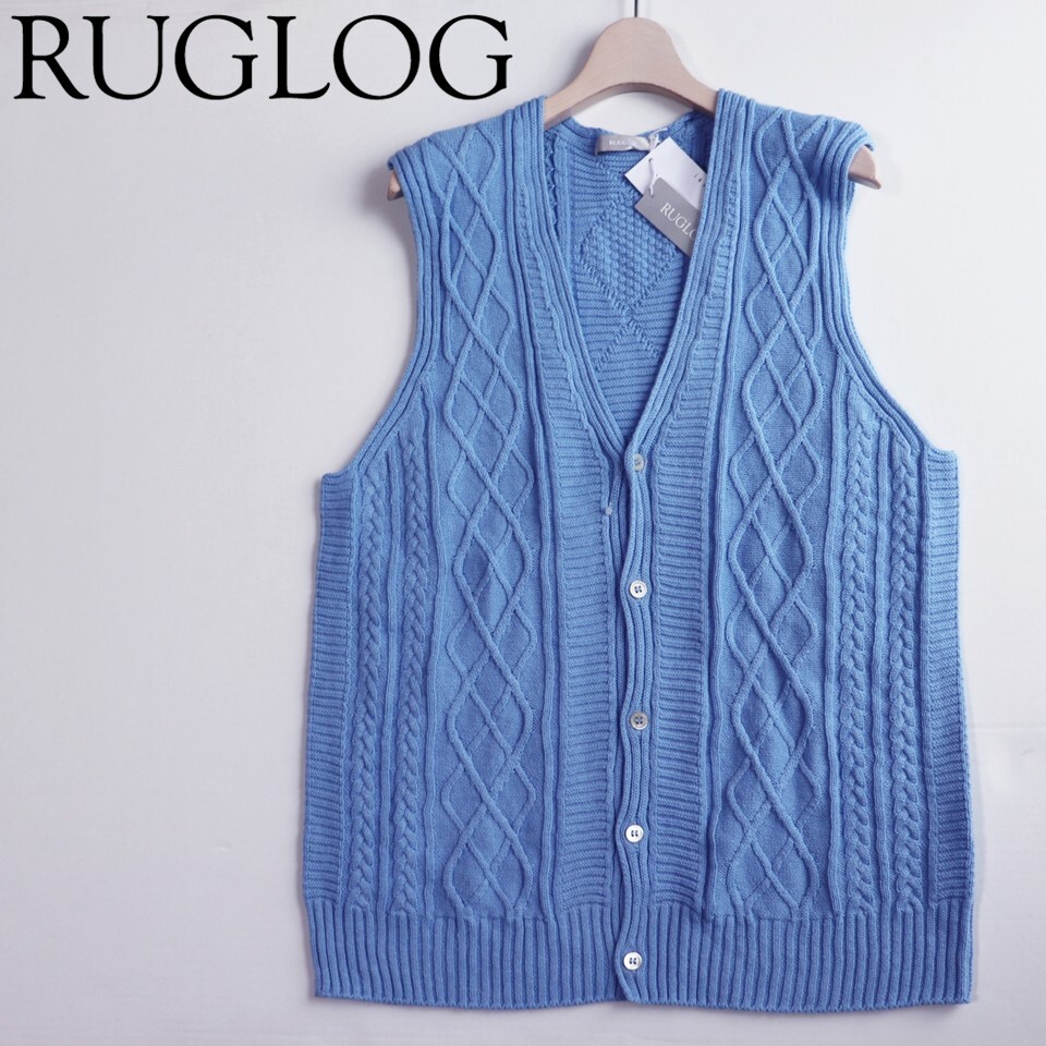 | 《RUGLOG ラグログ》新品 定価17,600円 伸縮性あり Yamagata knit コットンリネン ケーブル編みニットベスト スカイブルー M S1709 |