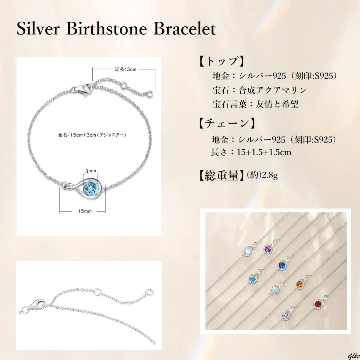 シルバー925の本格的な素材に、アクアマリンの誕生石が施されたこちらのブレスレットは、誕生日プレゼントや記念日のギフトにぴったりのアイテムです。