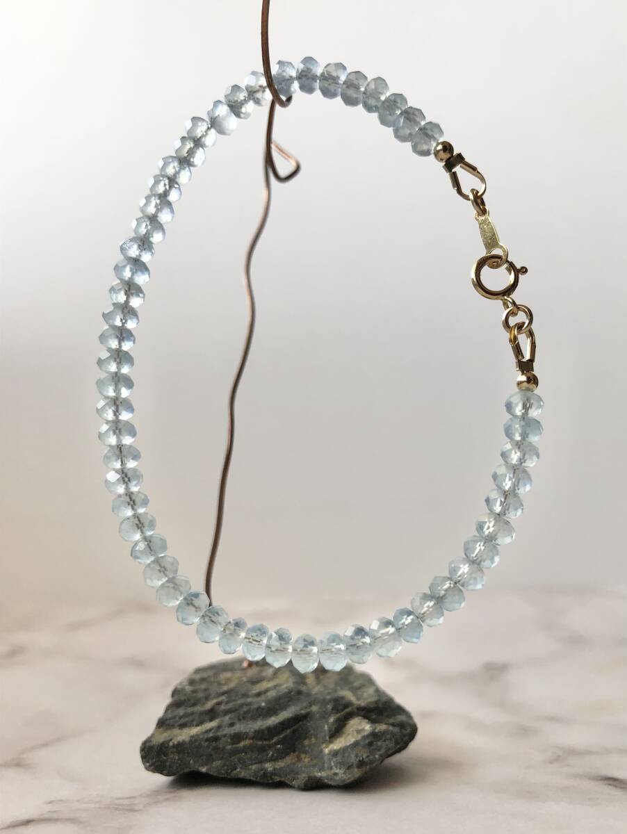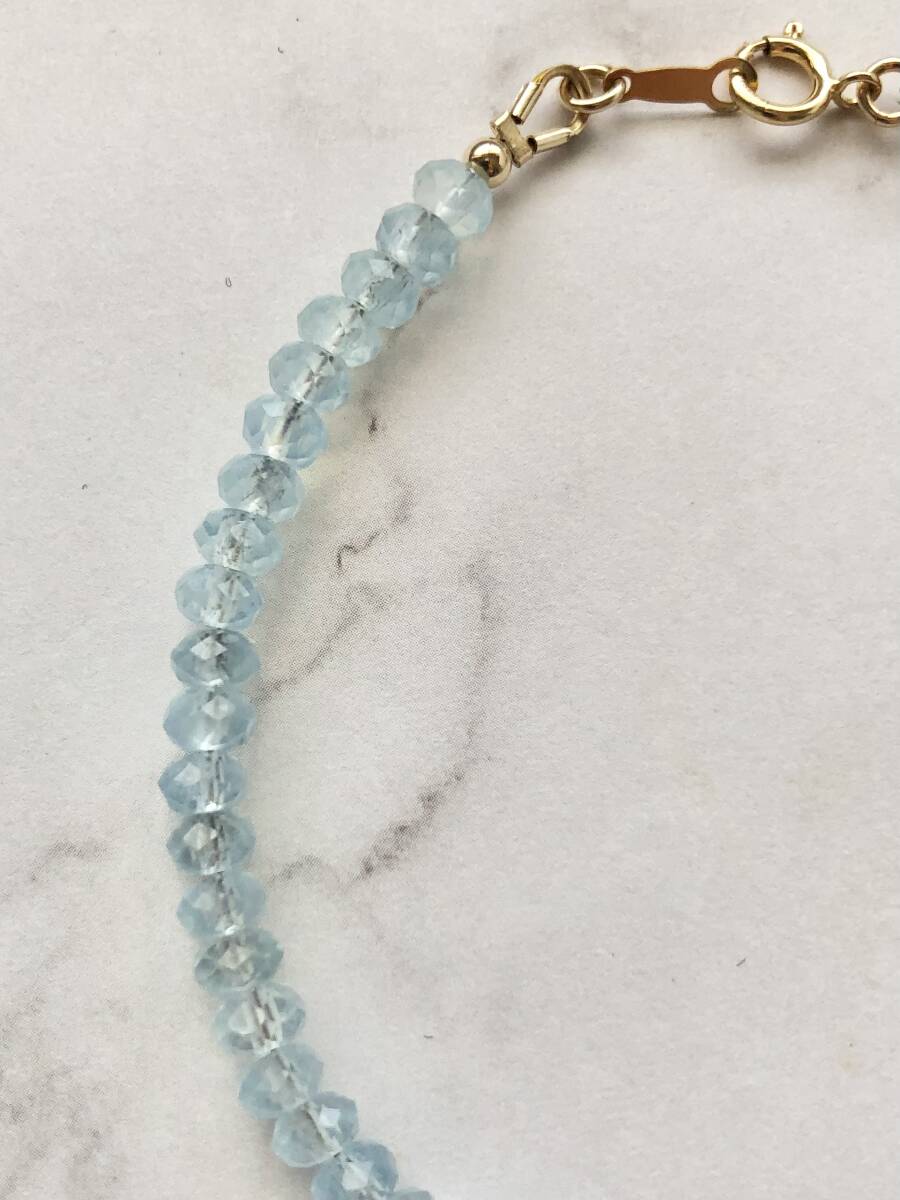 数多くの出品商品の中からご覧頂き誠にありがとうございます。 アクアマリンのシンプルなブレスレットです。 とても可愛い色で、キラキラして綺麗です。 石先端のワイヤー留めの際、隙間を開けています(3mm強) 隣り合う石同士の接地面が大きく、干渉して突っ張り輪にした時にカクカクしてしまうためです。恐れ入りますがご了承ください。 ※ご使用後はジュエリークロスで優しく拭いて頂くと、艶や輝きを保てます。 ジュエリークロスは、眼鏡や時計を購入した際に付いている布でも大丈夫です。 ※ 以前に別サイトにて出店しネット販売をさせて頂いておりました。 時間的に継続が難しくなり撤退後、普段は自身と身の周りの方々に作成していますが、材料の在庫過多のため限定数で出品させて頂きます。宜しかったらどうぞお迎えご検討ください。 |
