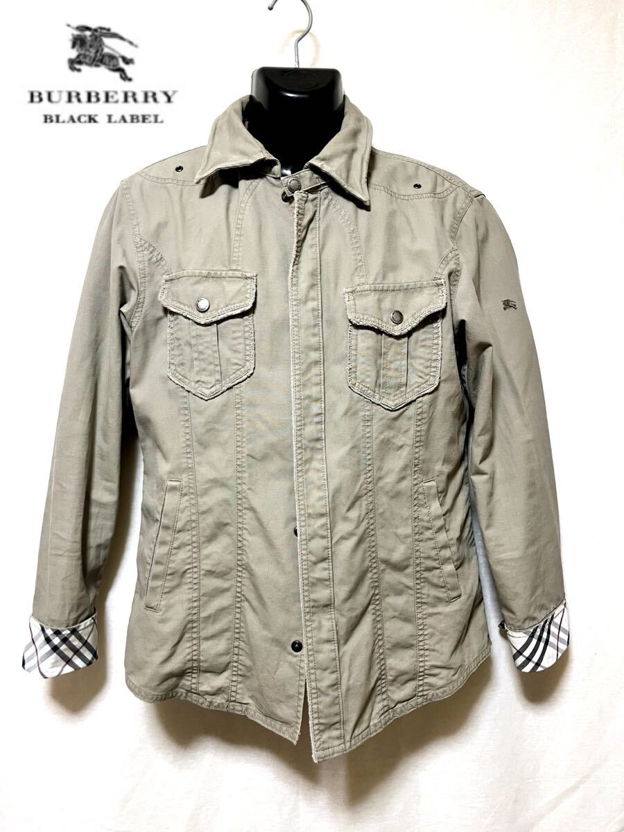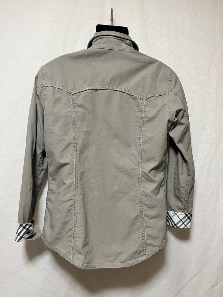 即決★BURBERRY★バーバリー★ブラックレーベル★メンズ★M★ミリタリーシャツ★ワイヤー襟★綿100%★三陽商会★アーミー★スナップボタン