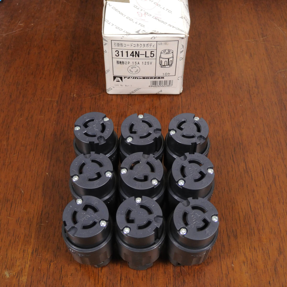 アメリカン電機 3114N-L5 引掛形コードコネクタボディ ナイロンカバー 接地形2P 15A 125V NEMA L5-15 9個 新品未使用
