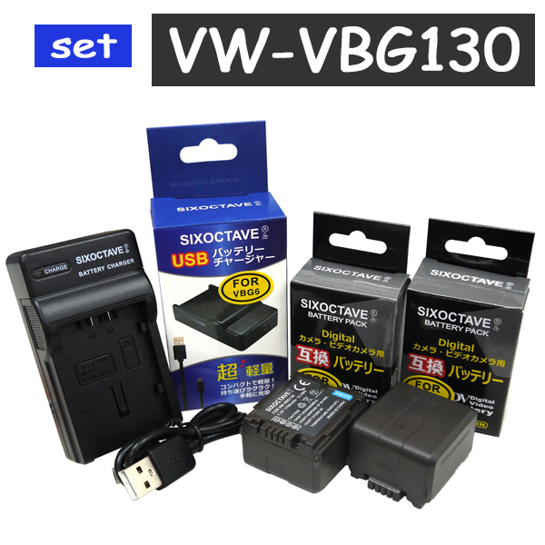 VW-VBG130 パナソニック 互換バッテリ-2個と互換USB充電器の3点 set