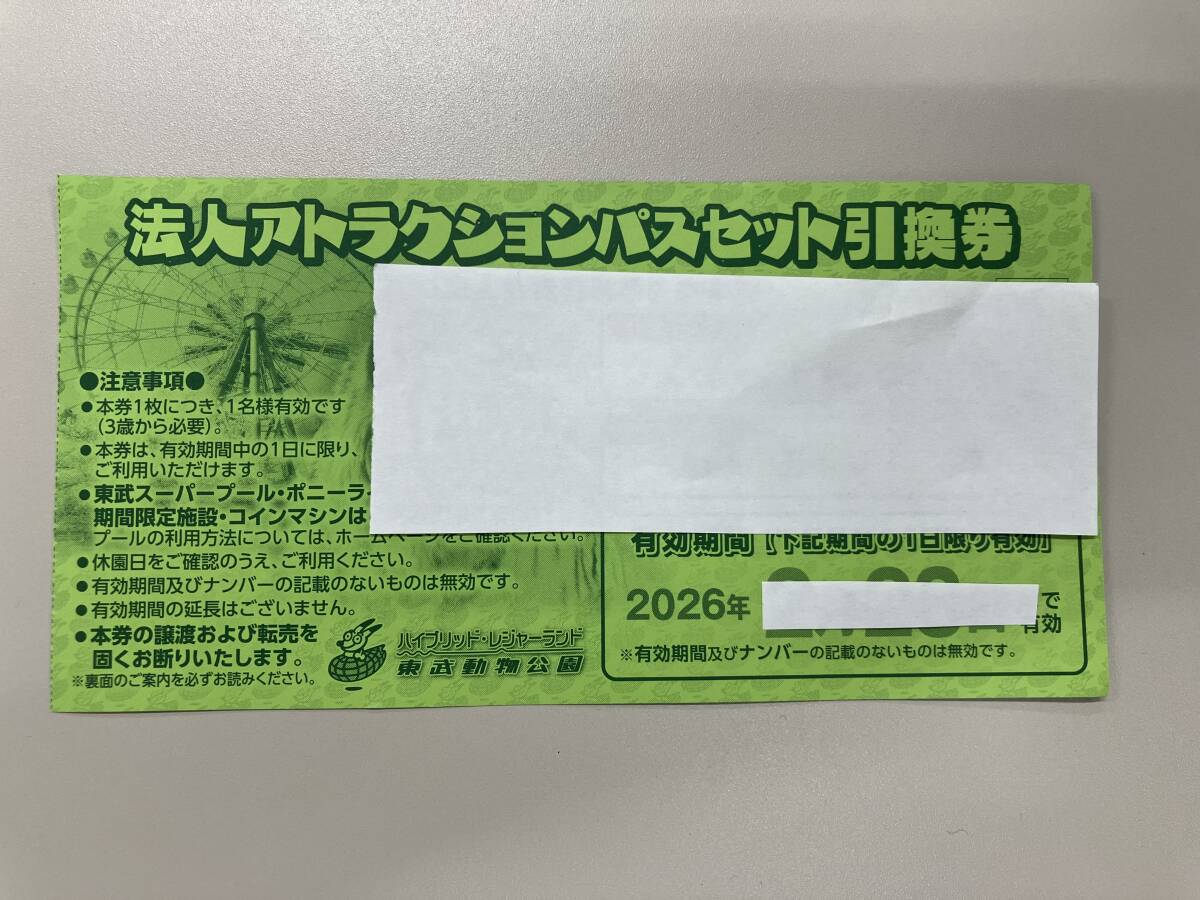 ◆東武動物公園のアトラクションパス引換券です。この券を入口でアトラクションパスと交換していただくと、東武動物公園に入場+乗り物乗り放題が利用できます。