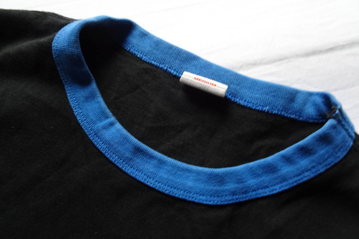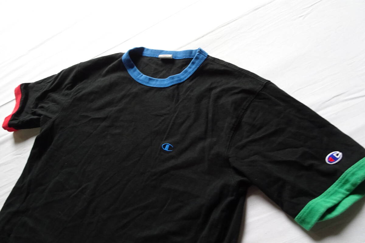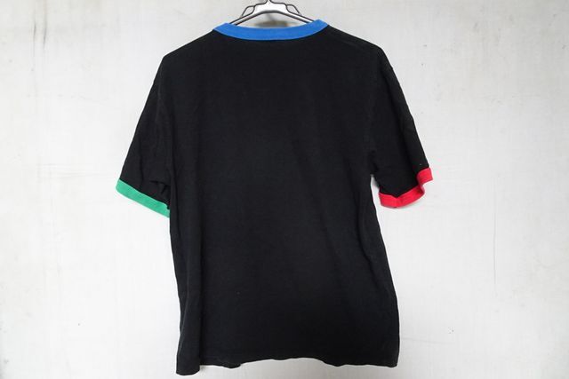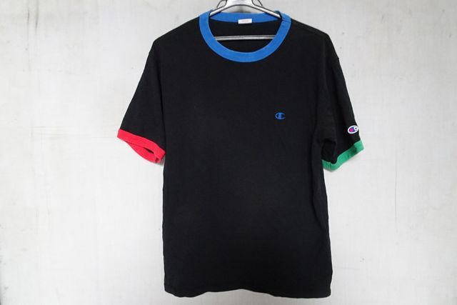 Champion/チャンピオン/C3-T341/半袖Tシャツ/青・赤・緑トリミング/ブランドロゴししゅう/黒/ブラック/Mサイズ(5/7R7)