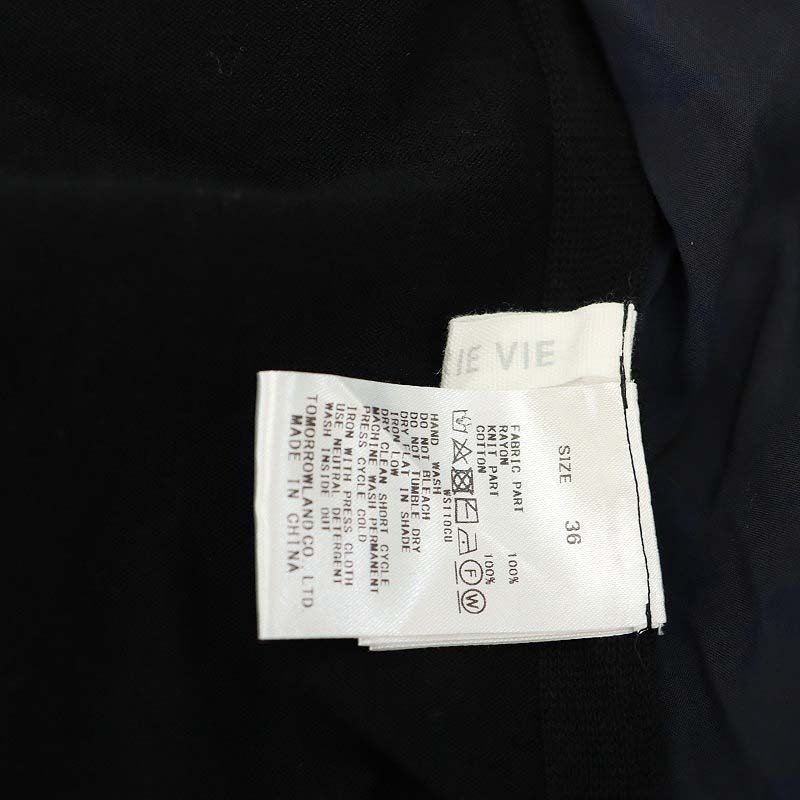 ギャルリーヴィー GALERIE VIE トゥモローランド レーヨンニットコンビ ワイドプルオーバー カットソー フレンチスリーブ 36 S 紺 黒