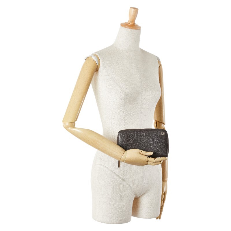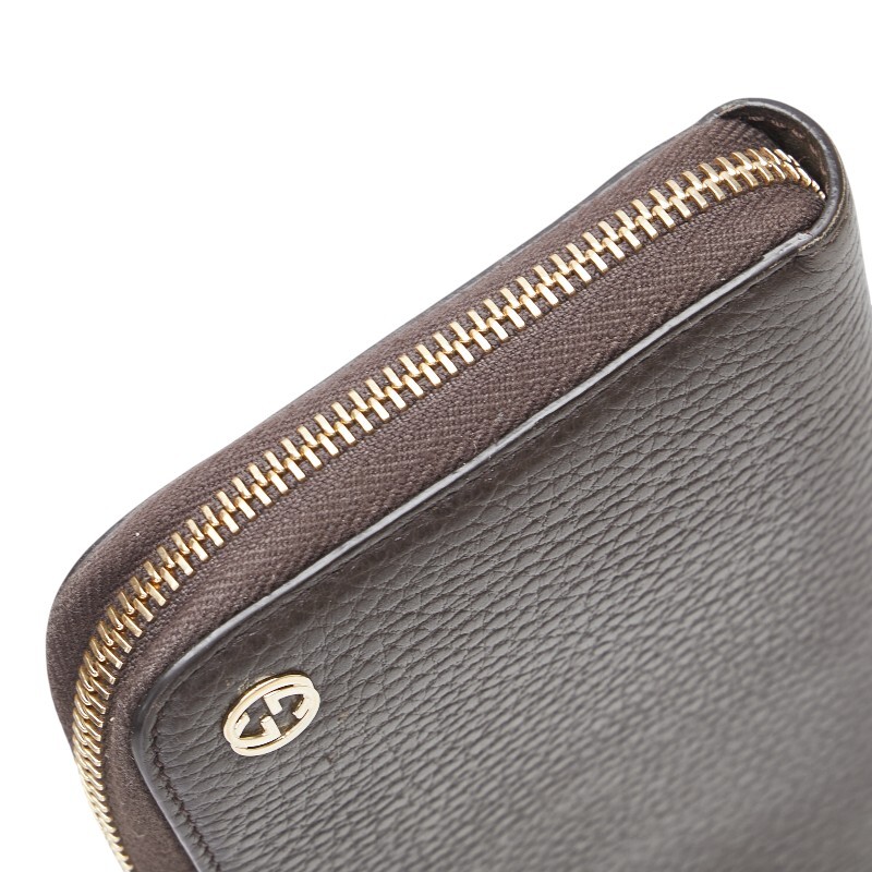 グッチ インターロッキングG 長財布 ラウンドファスナー 449347 ブラウン レザー レディース GUCCI 【中古】