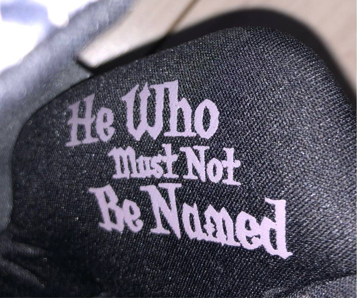 本モデルは、アッパーに黒いスエード素材とダークマークでヴォルデモート卿の献身的な死喰い人たちに敬意を表し、ナギニとスリザリン家に似たヘビとウロコのディテールも取り入れ、アウトソールにはグリーン、生命の源であるユニコーンの血を表すシルバーのヒットまで、ヴォルデモートにインスパイアされたさまざまなアクセントが施されています。