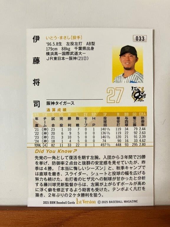 【2025 BBM 1st】033伊藤将司(阪神タイガース)レギュラーカード