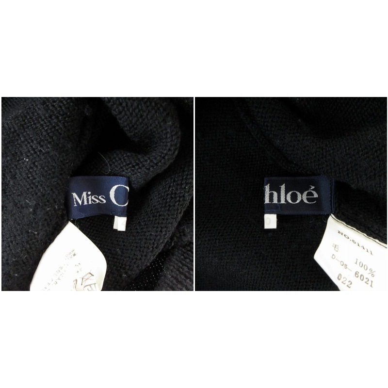 ミスクロエ miss chloe ニット セーター タートルネック ウール ワッペン 長袖 40 XL 黒 ブラック ■GY14 /AE レディース