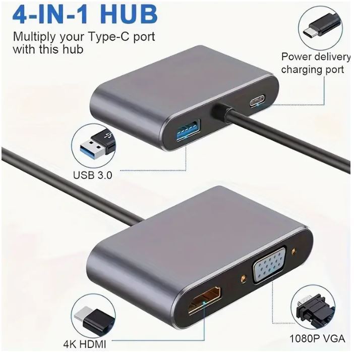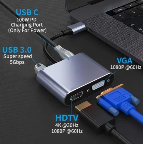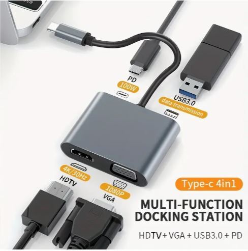 PC、スマホ、タブレット、任天堂Switchやゲーム機などの画面をTVやモニタやVGAモニタに出力できる4in1のドッキングステーション