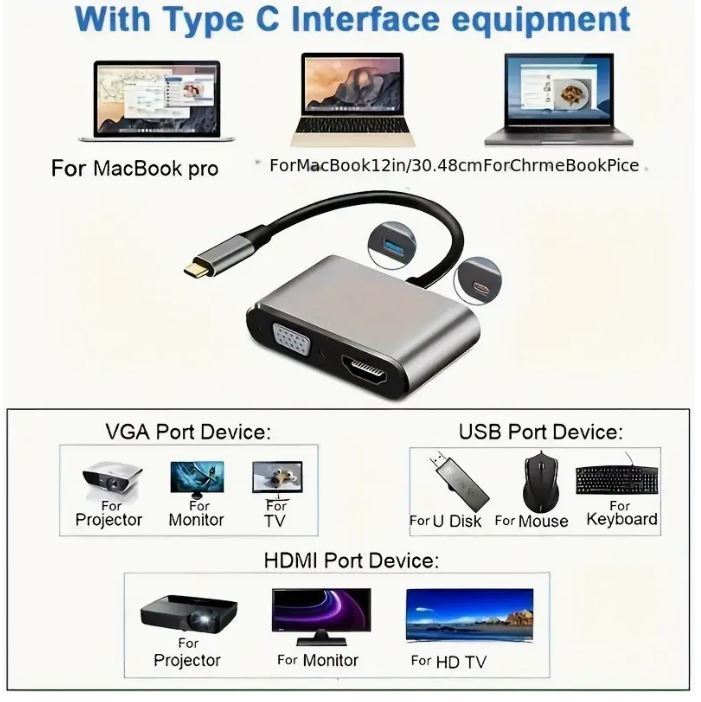 送料無料 4in1ドッキングステーション Type C ⇔ HDMI + VGA 映像出力 変換 USB3.0 PD スマホ タブレット Switch MacBook iPad ドック