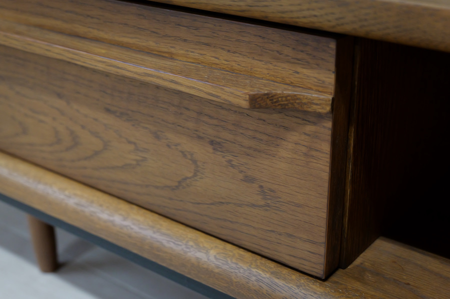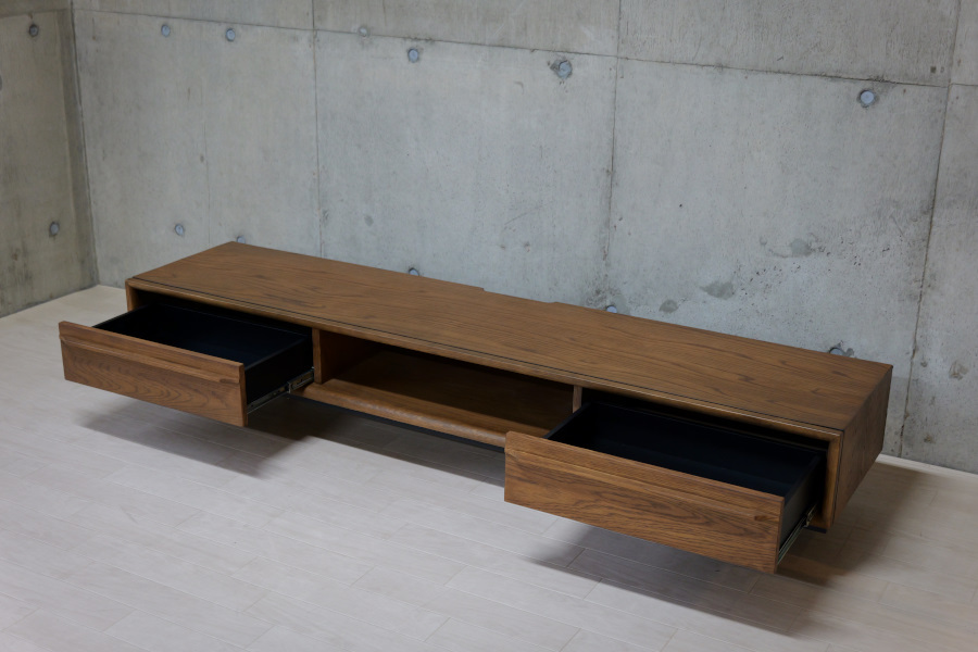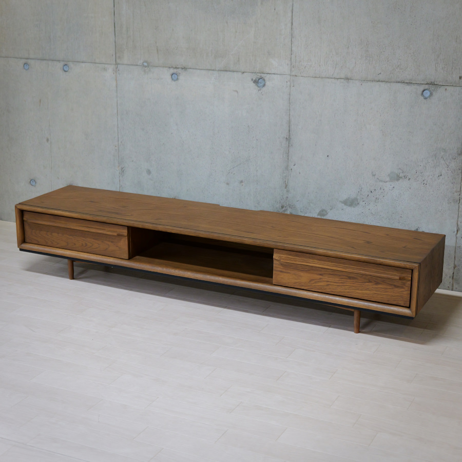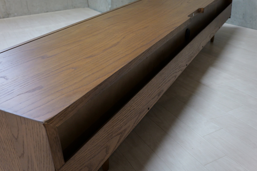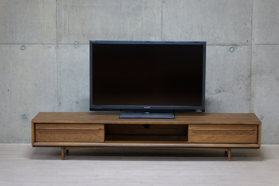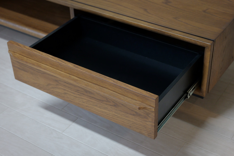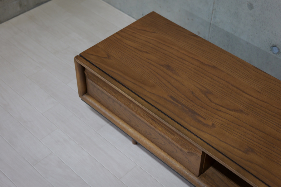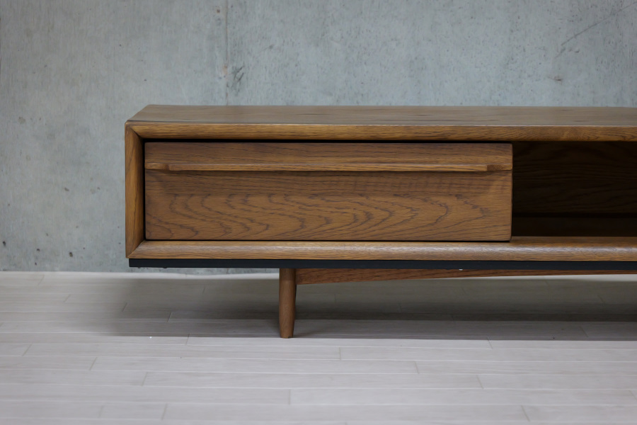 ●ハッキリとした個性的で特徴的な木目が人気の天然木(オーク)(表面材はオークの突板)を使用した、重厚感のあるTVボード。