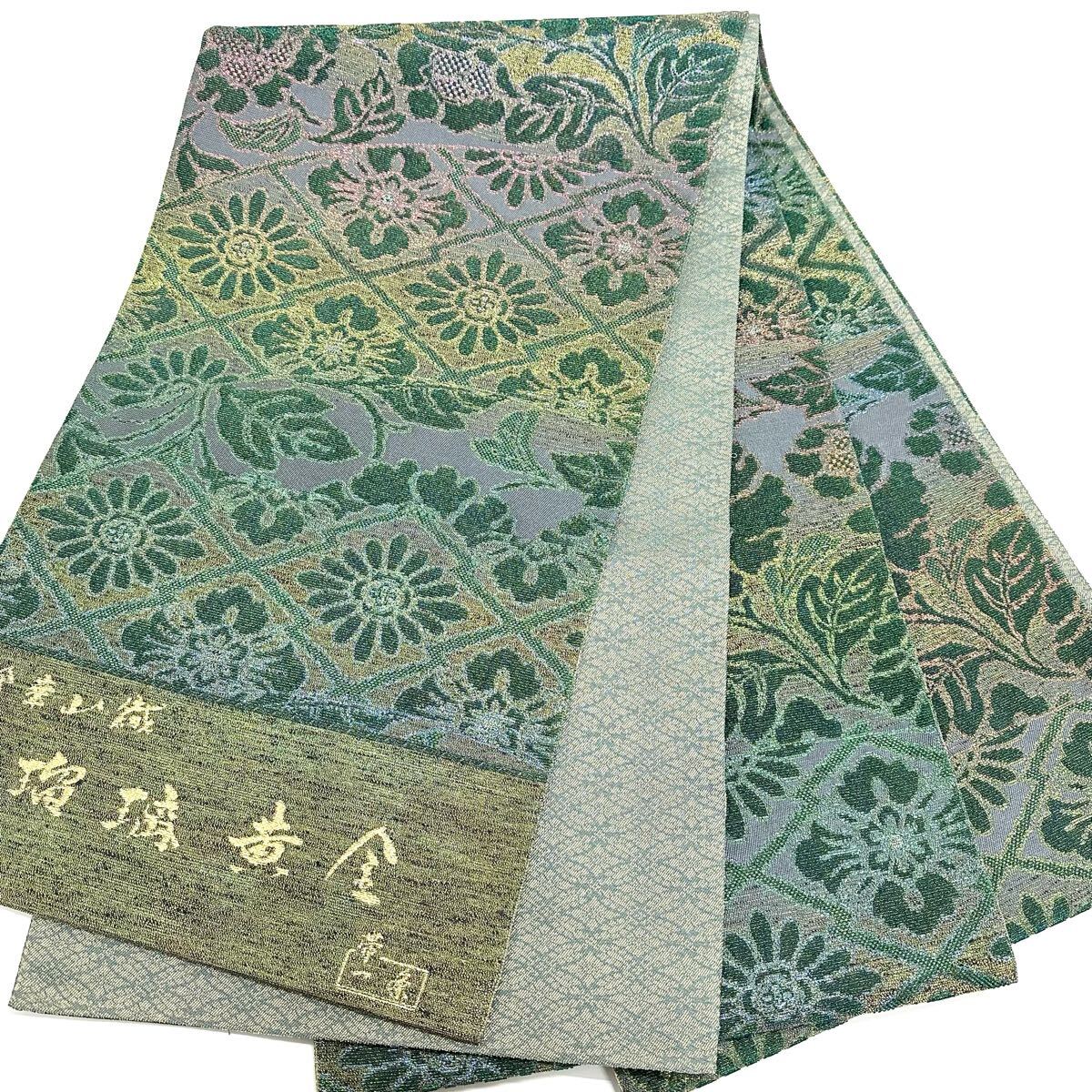 【七福】c512 逸品 高級品 正絹 袋帯 全通 金華山織 瑠璃黄金 正倉院文様 金糸 豪華