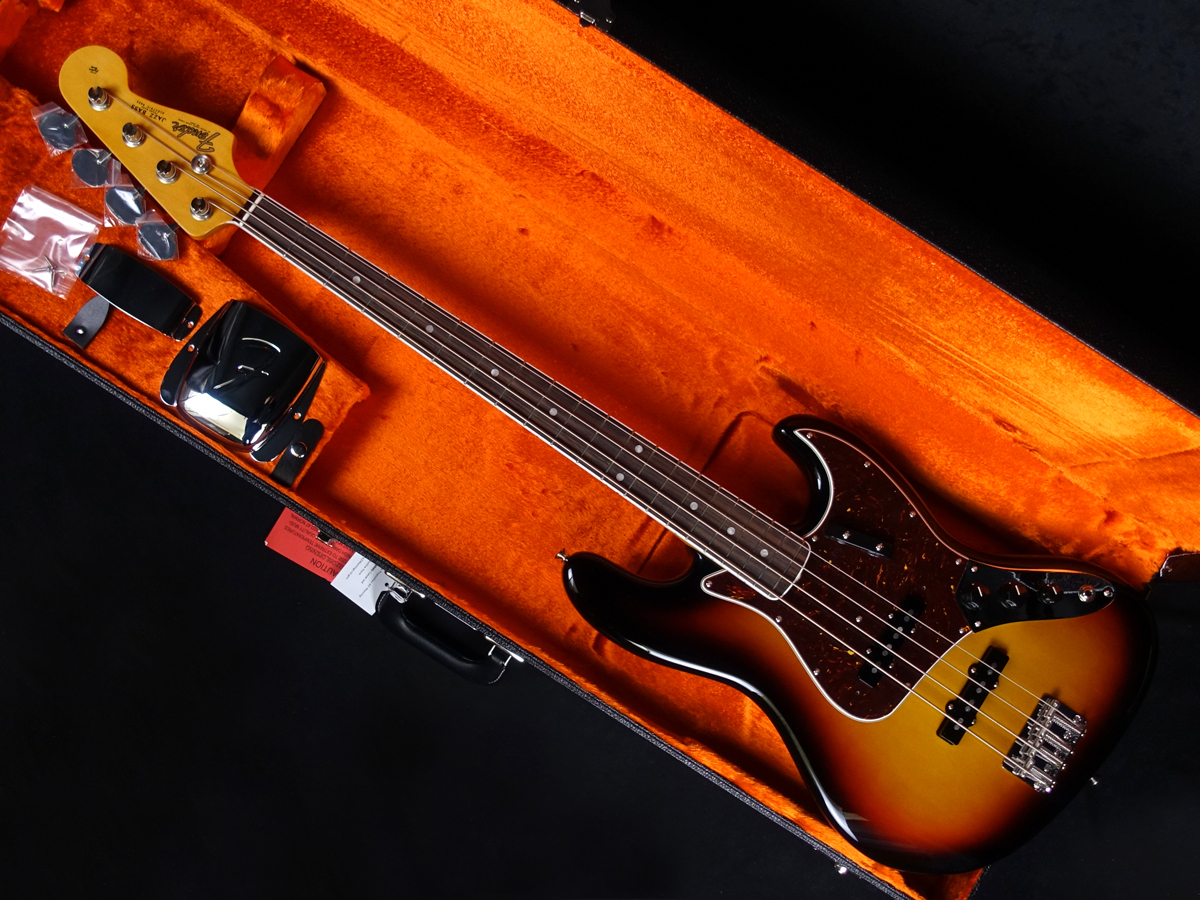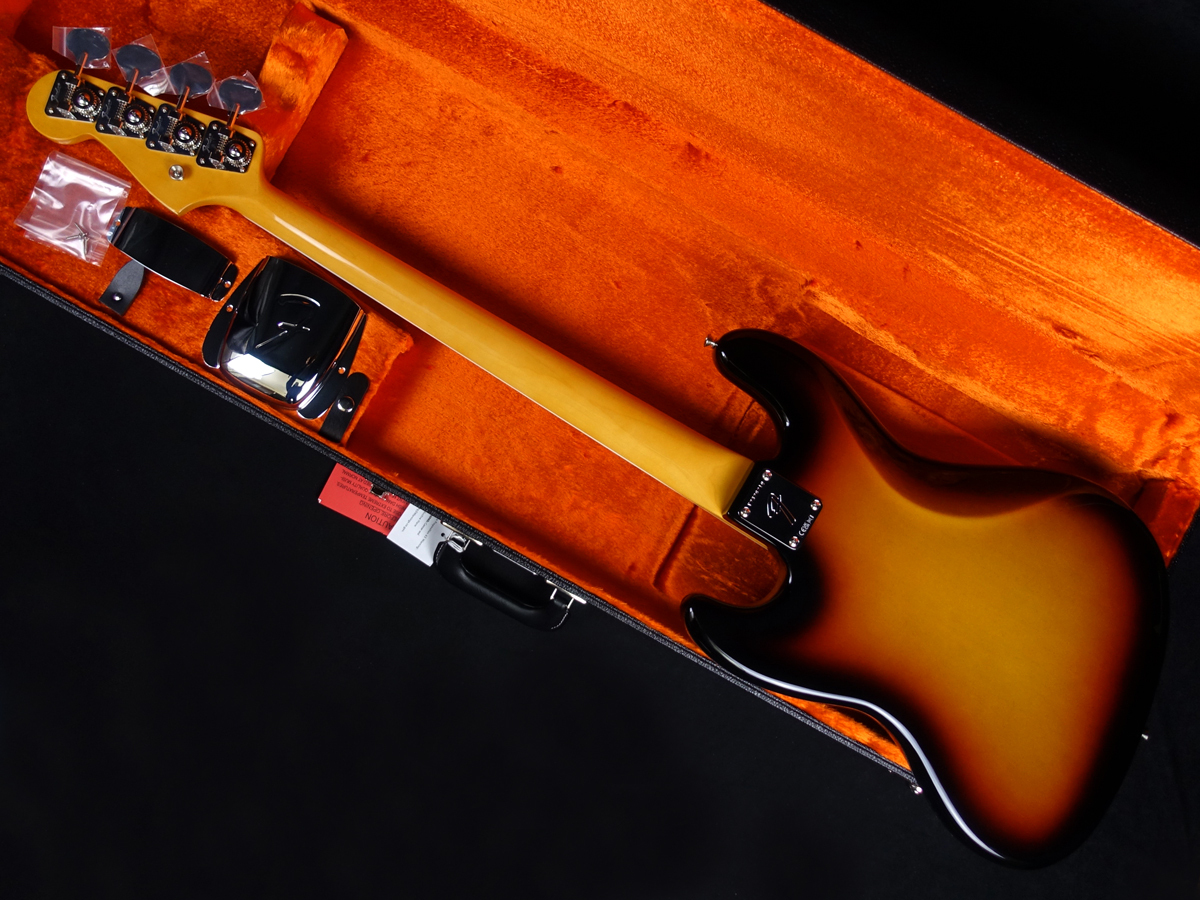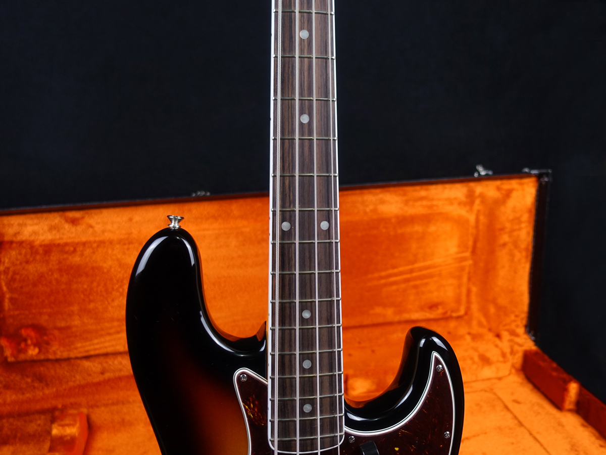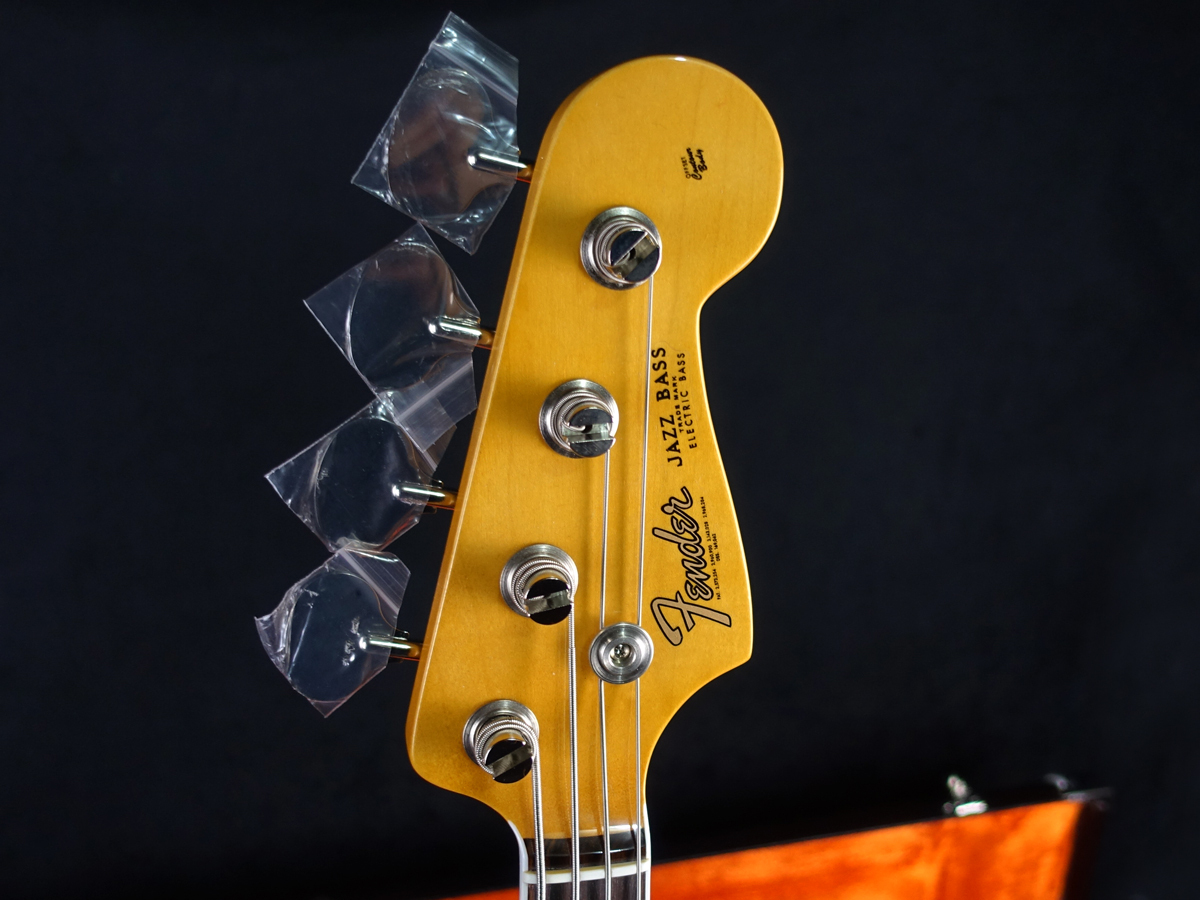 ホワイトネックバインディング、パールドット、マスタートーン付き2ボリュームコントロール、4plyべっ甲柄ピックガードなど、1966 Jazz Bassならではの特徴を備えています。