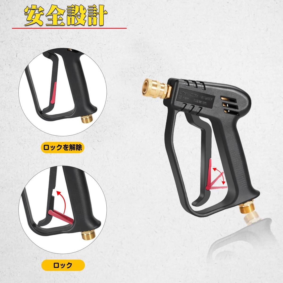 「高圧洗浄ショートガン ケルヒャー 高圧洗浄機用 M22 14mm トリガーガン 高圧洗浄ガン 耐久性 マルチスプレー 5段調整可能 4000PSI高圧洗浄」おつけいたします。