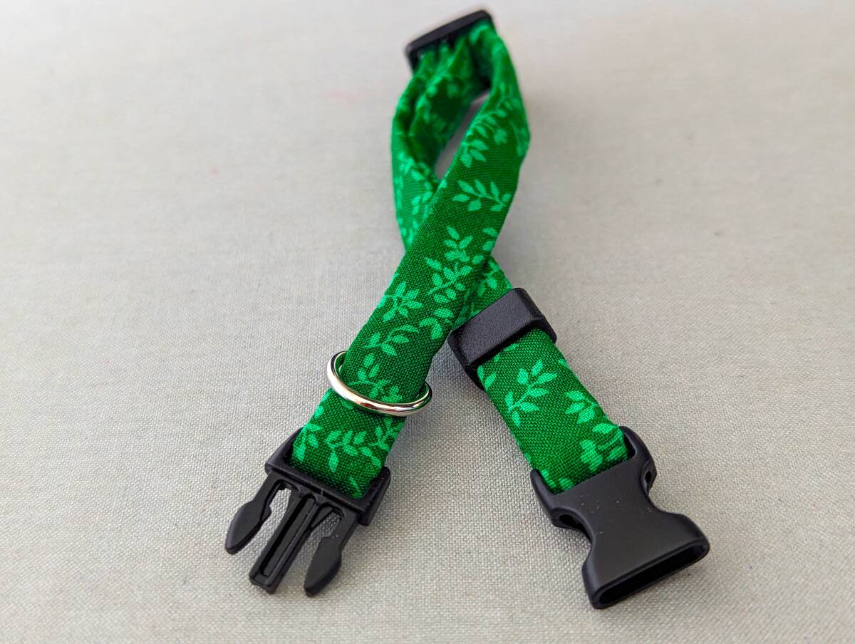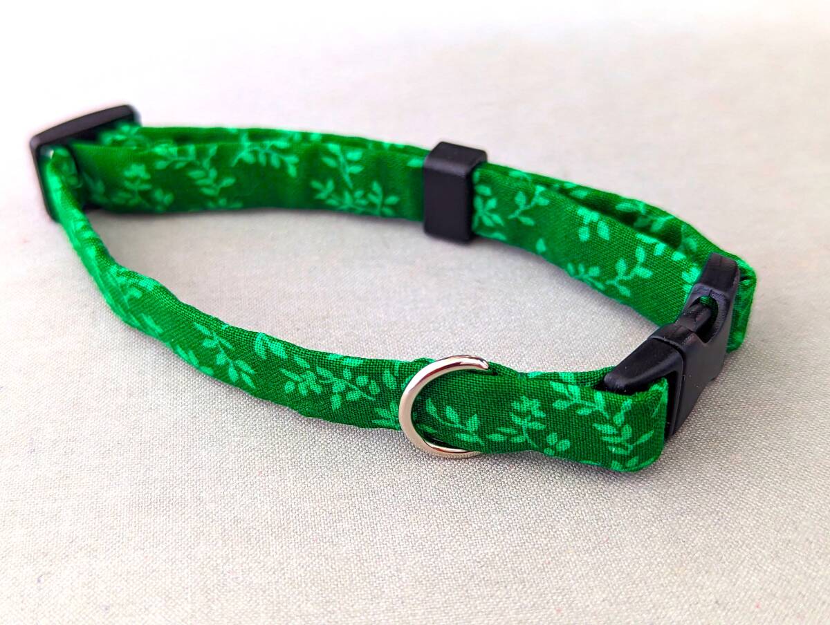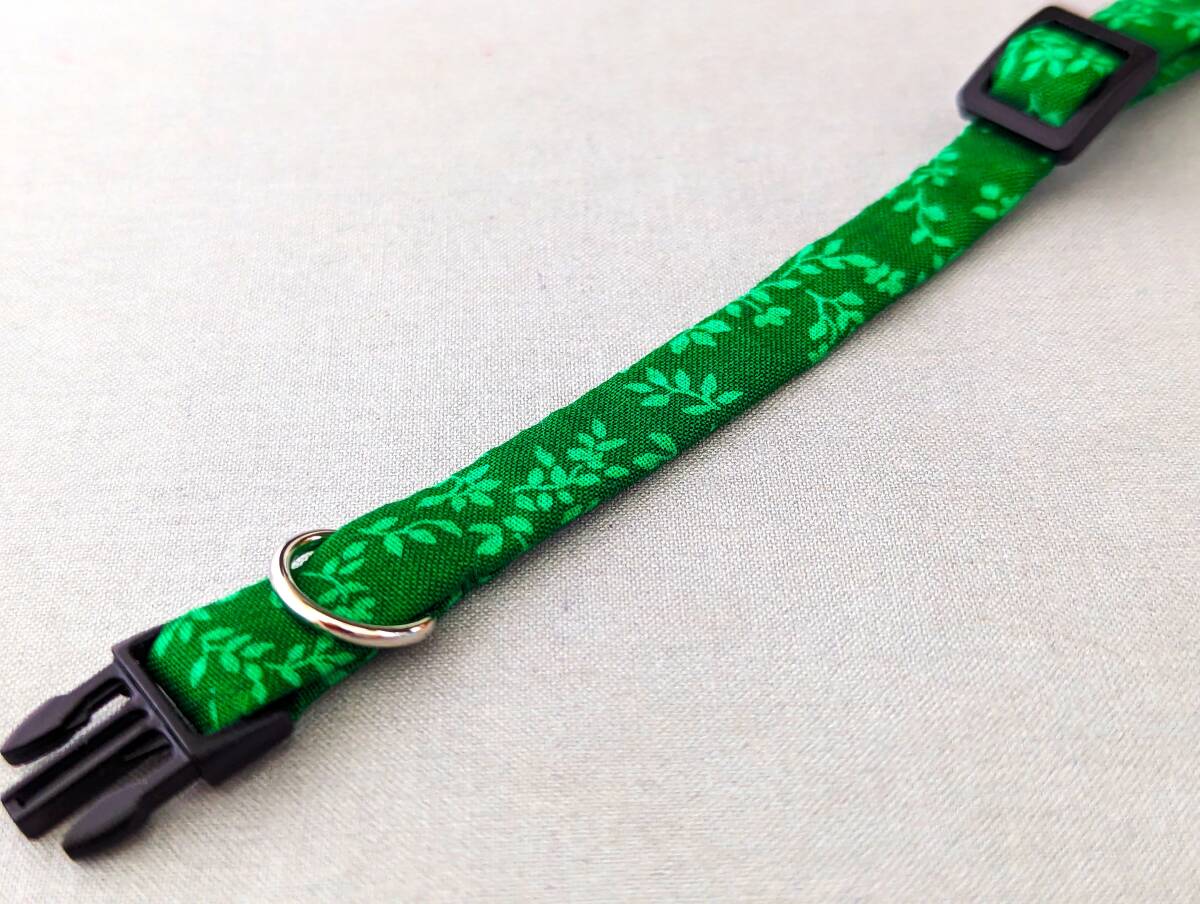 ★手作り京都作家物 猫 首輪 和柄★緑地野の草花柄★ハンドメイド (セーフティタイプ) 即決700円