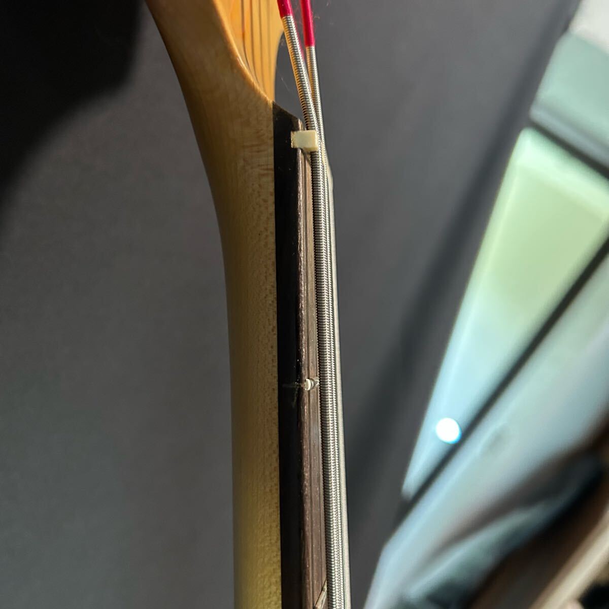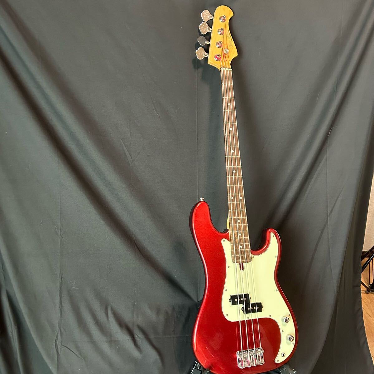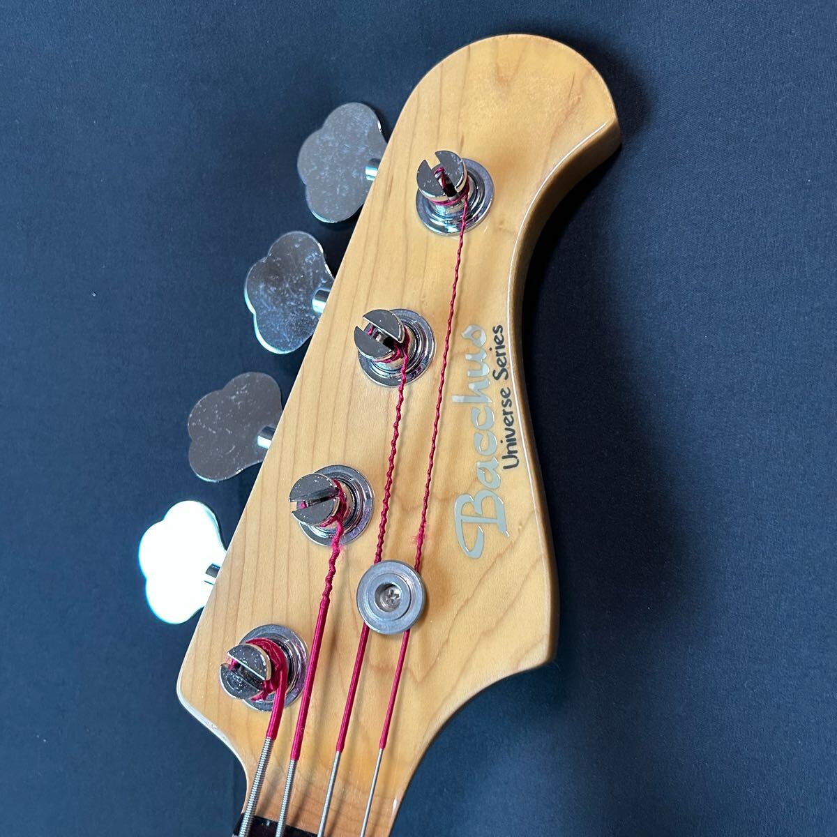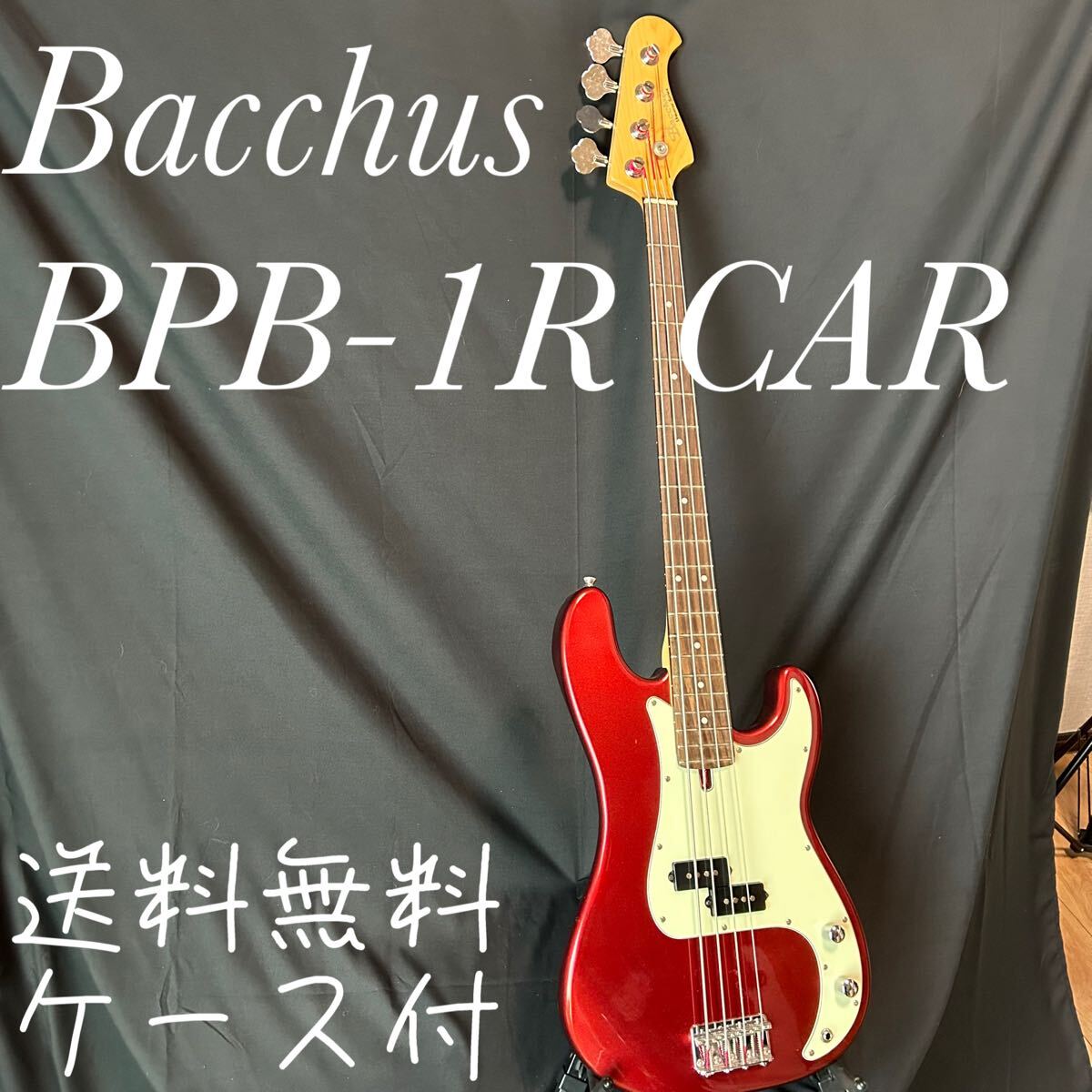レッドカラーのBacchus BPB-1R CARエレキベース、ケース付き。
