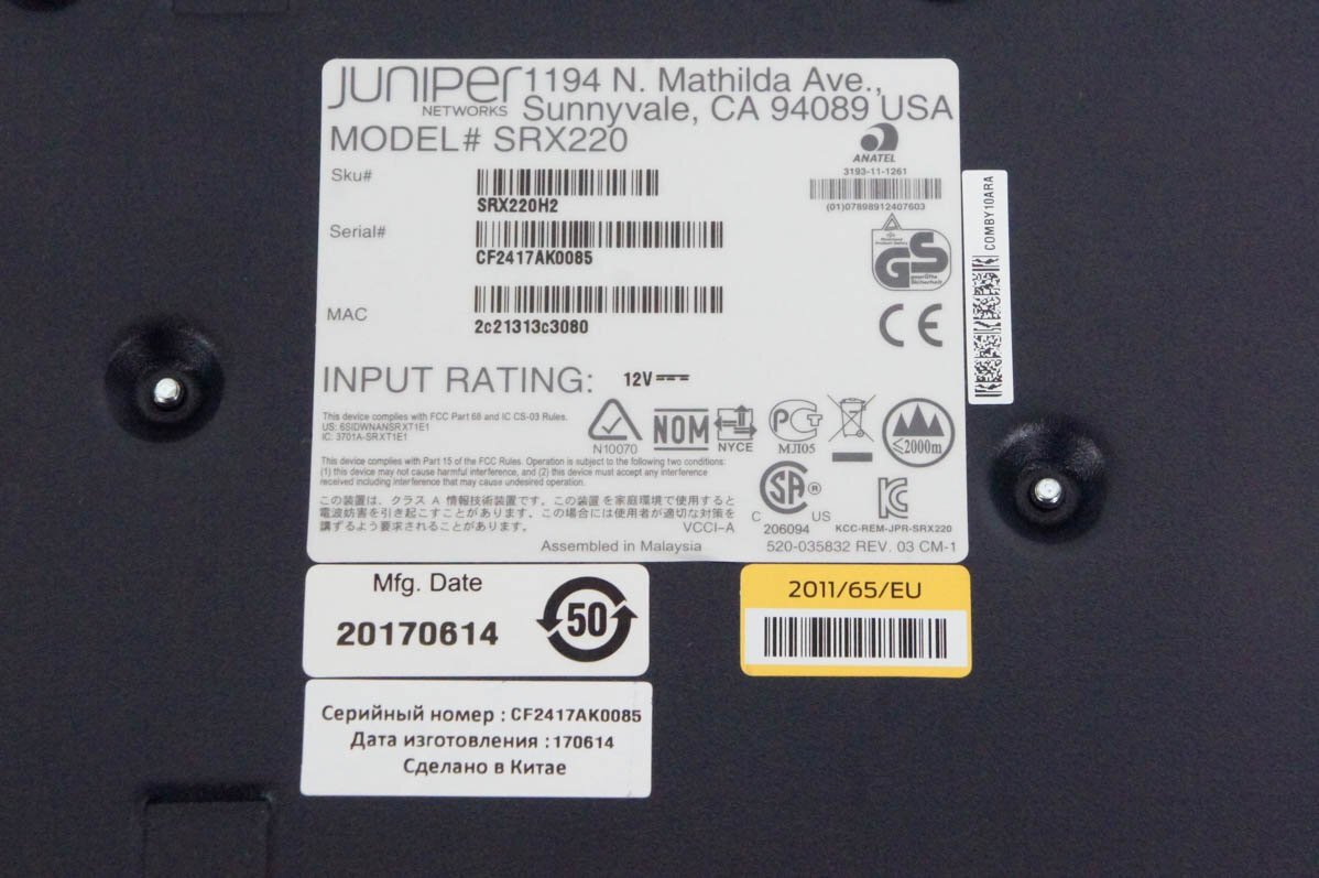 | 型番 | SRX220 | ||
