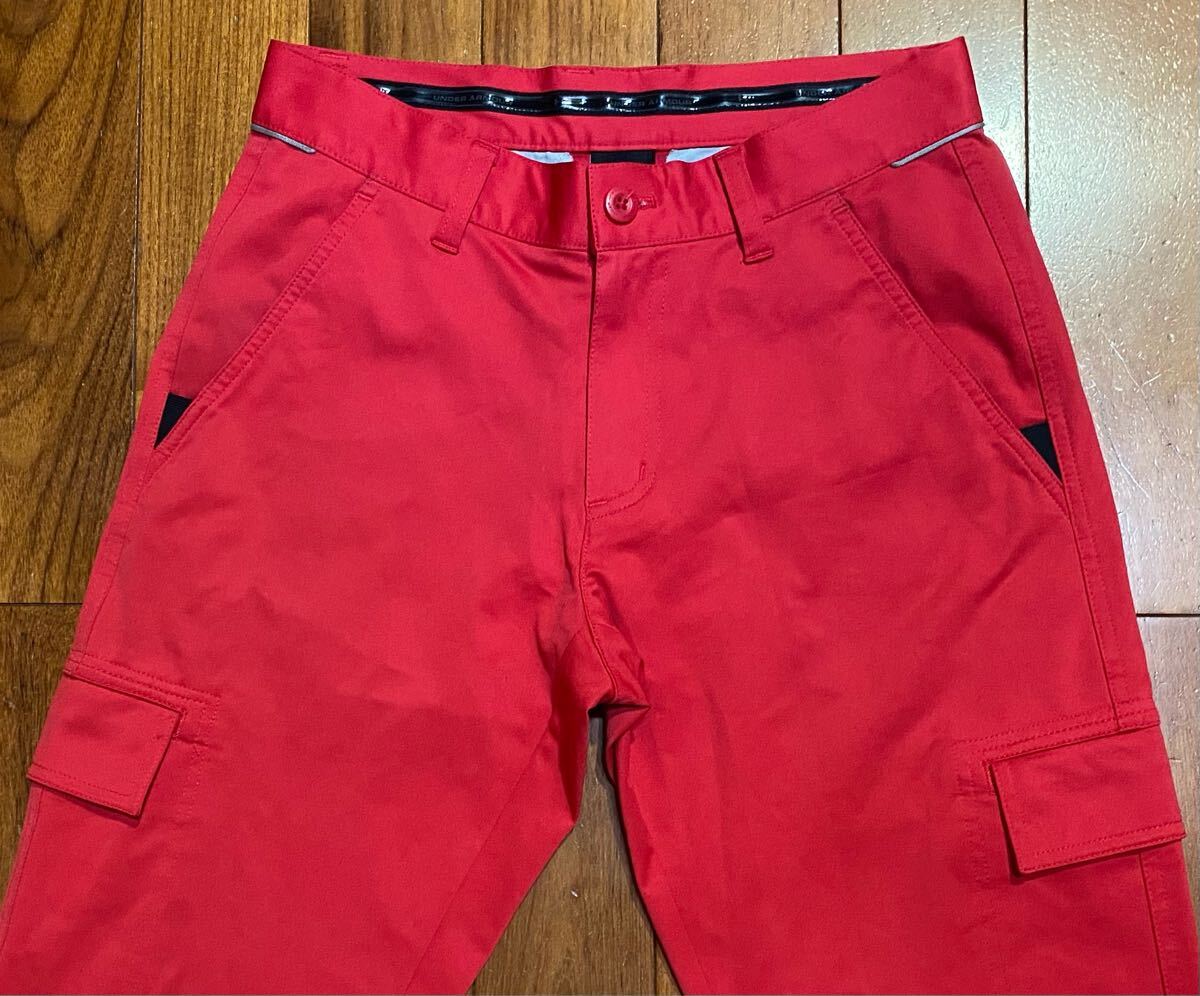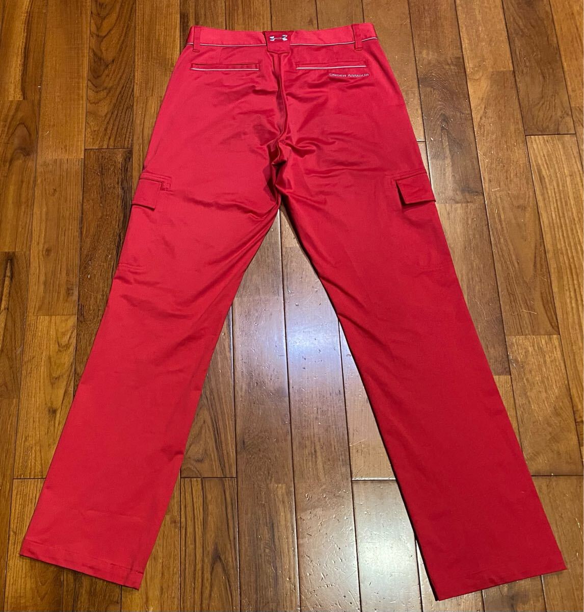 アンダーアーマーのUAダブルイーグルパンツ、MGF4931です。USEDですが状態は良いです(10段階中8程度)。生地はストレッチ入りでポリエステル100%です。ジッパーフライです。正規品です((株)ドーム、タイ製)。サイズはウエスト73cmでウエストは重ねずに平置きで約74cm、ヒップ約104cm、股上約24cm、股下約80cm、股下15cmのふともも部分約55cm、裾まわり約42cm、重量約380gです。発送はゆうパケットポストになります。