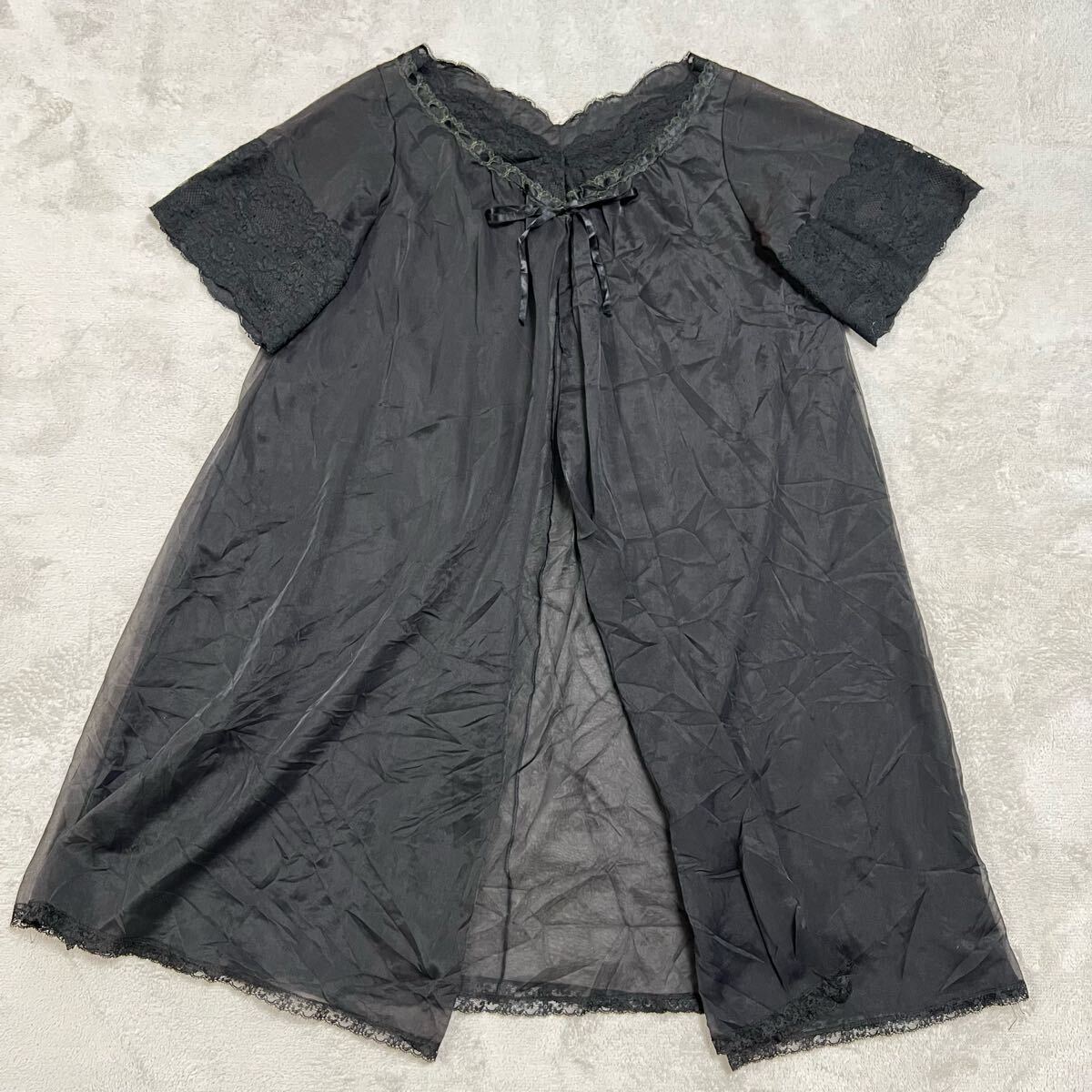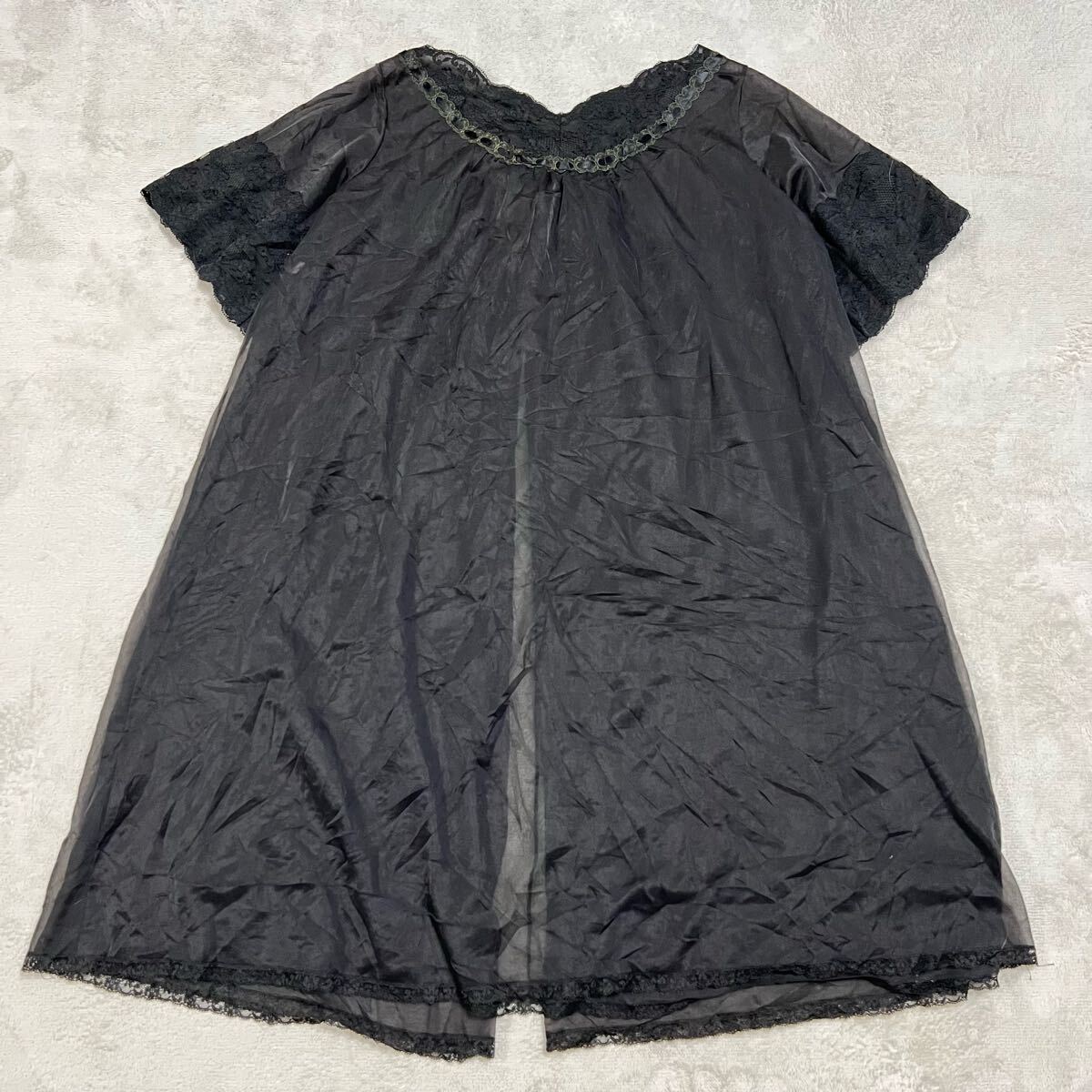★送料360円★70s ビンテージ shadowline シースルーワンピース ネグリジェ レディース ヴィンテージ レトロ チュニック丈 ブラック R-7503