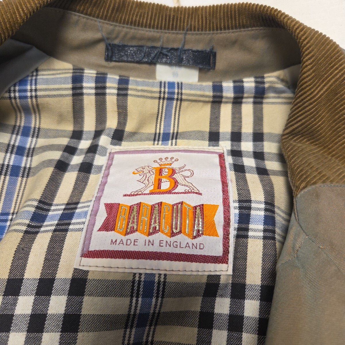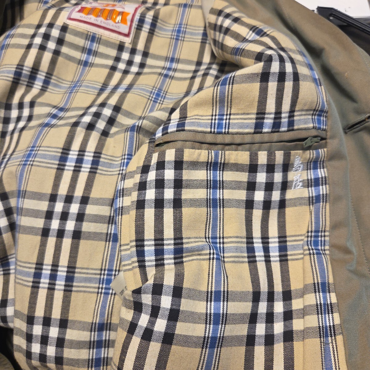 BARACUTAとしては珍しい玉虫色のコートです。胸ポケットに刺繍がありますが、状態は良い個体です。