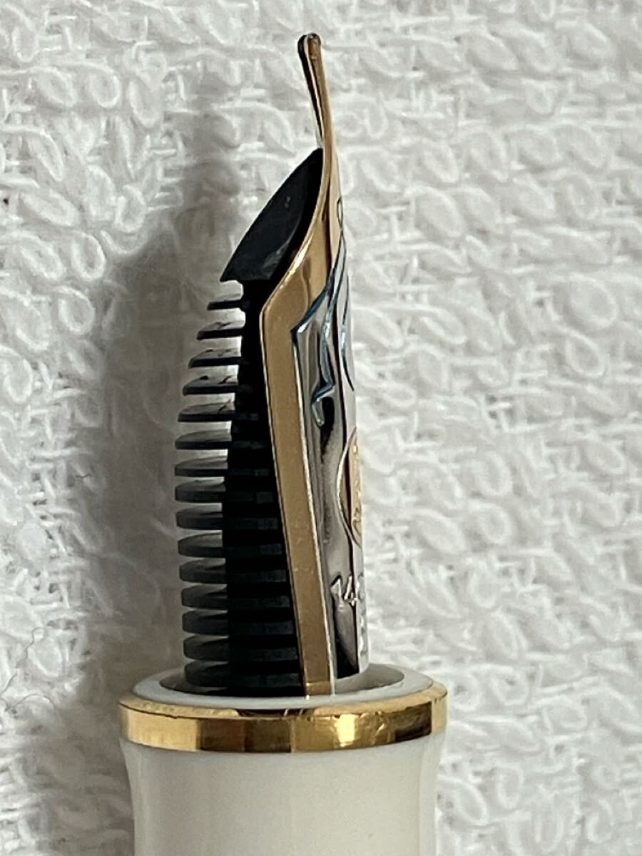 ペン先洗浄済みですがブルーインクが溝に残っています。