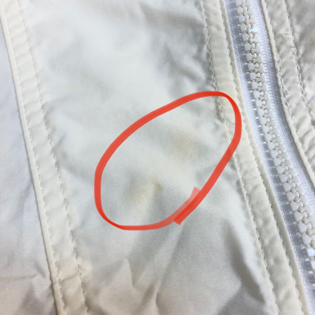 胸部に薄いシミあり(画像4枚目参照) 首元のドローコードのプラスチック部分に変色あり。 |