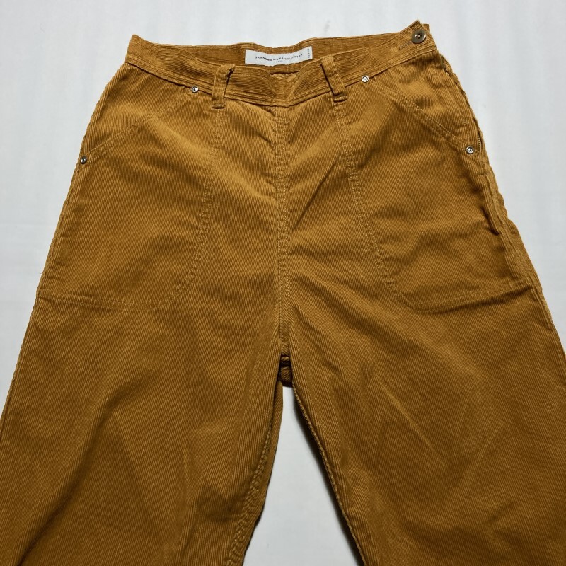 GRANDMA MAMA DAUGHTER★大きめ希少サイズ2★サイドジップ コーデュロイ ワイドパンツ ハイウエスト 茶ベージュ山吹 ユニセックス グランマ